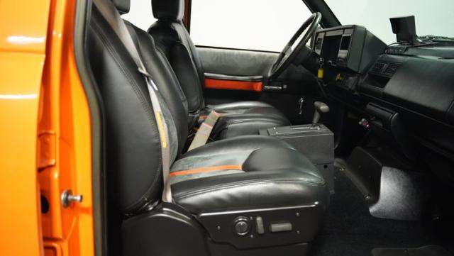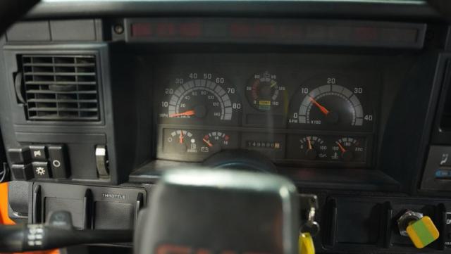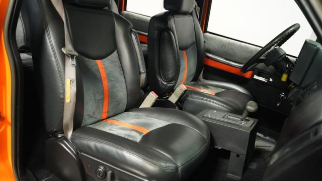 The charcoal and gray interior by ELSOL of Syracuse showcases exceptional craftsmanship. Leather and suede bucket seats offer comfort, while the custom door panels and headliner elevate the cabin. The dash, adorned with the original gauge cluster, is in remarkably good condition. With power seats, new carpet, and a sleek console shifter, this TopKick\'s interior is as impressive as its exterior.