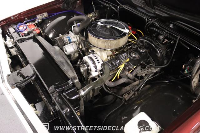 Under that custom hood rumbles a 350 cubic inch V8 that breathes easy with an Edelbrock carb and intake, and a modern serpentine belt system. Shiny chrome valve covers and breather add a touch of hot-rod style. Power steering makes maneuvering effortless, while power disc brakes up front ensure confident stops. That smooth-shifting TH200-4R 4-speed automatic transmission with a stall converter and sturdy 12-bolt rear end are ready to handle all that power. Throw in a painless wiring setup, fuel cell, and throaty dual exhaust, and you\'ve got a reliable cruiser that\'s ready to rock.
