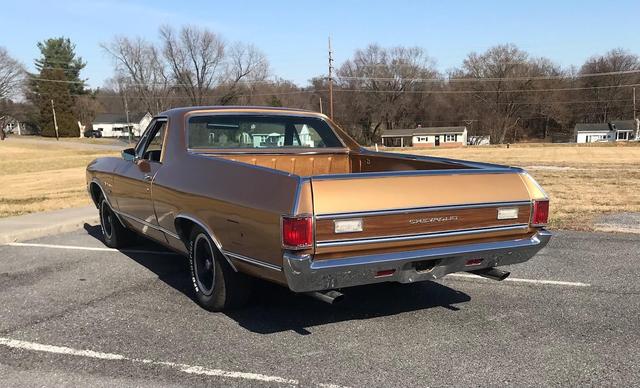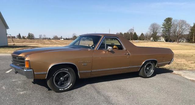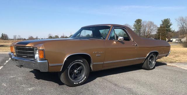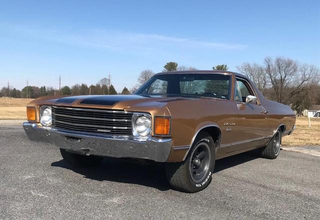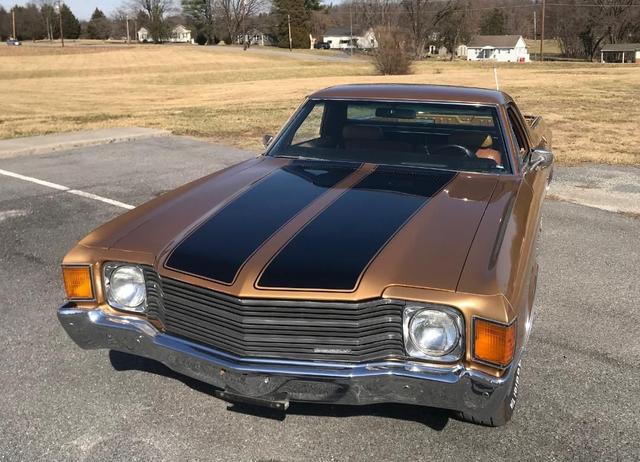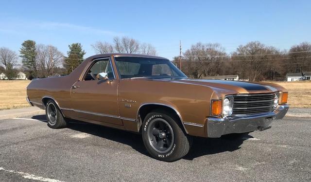 1972 Chevrolet El Camino with fresh 350 cu in crate engine, 4 BBL carb, dual exhaust, automatic transmission, power steering, power disc brakes, factory air conditioning, AM/FM radio, 15in SS wheels, tinted glass and more.