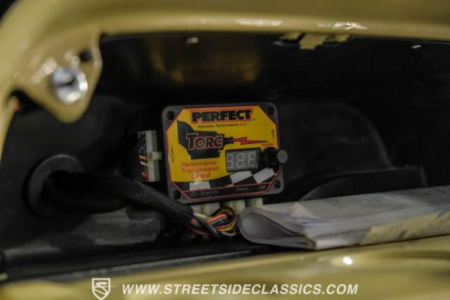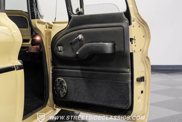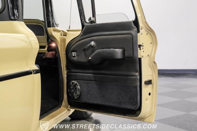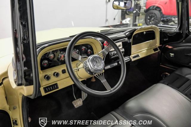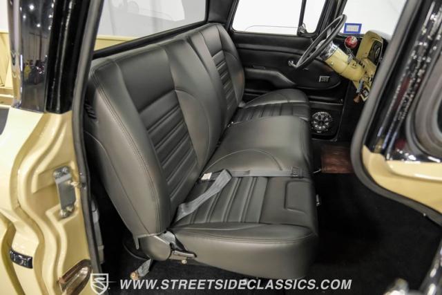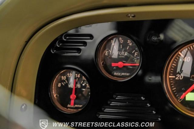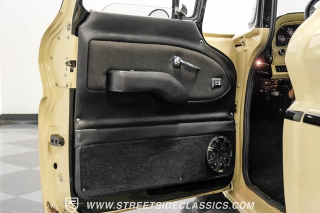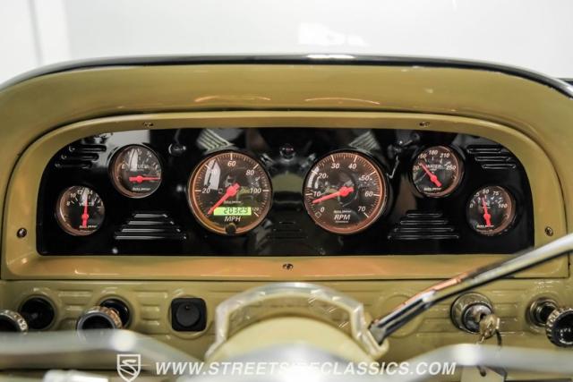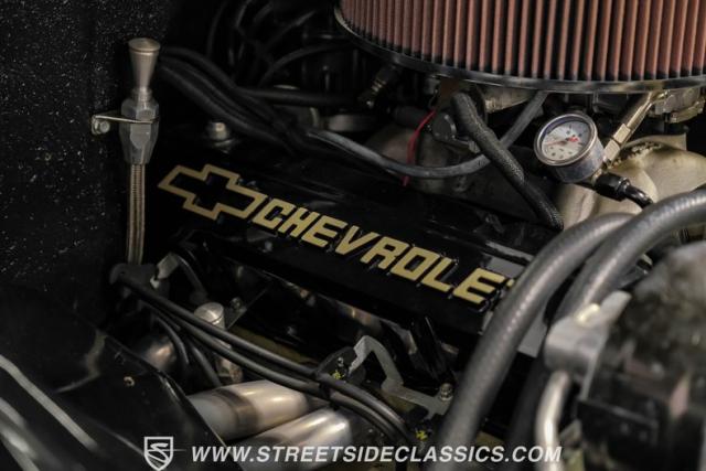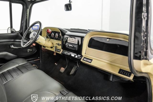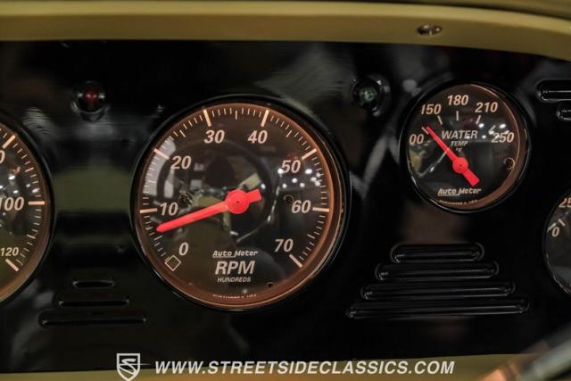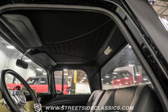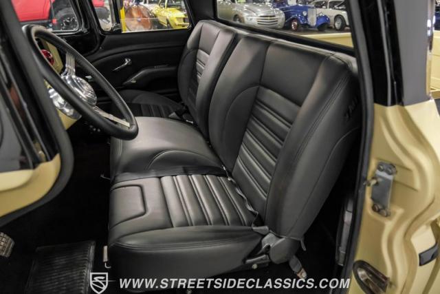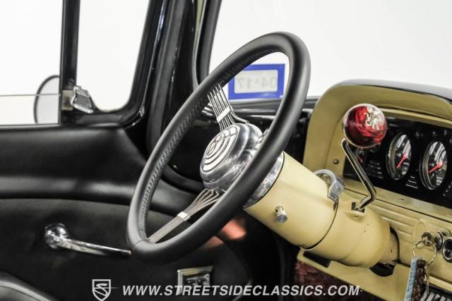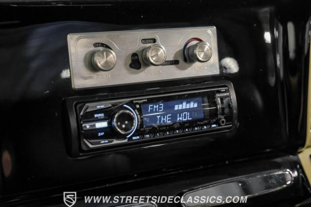 Inside the black interior you will find a cohesive cockpit that\'s both stylish and functional. The custom bench seat offers comfort for long hauls, while power windows and air conditioning provide modern conveniences, although the A/C will need servicing to blow cold again. An Ididit tilt column topped with a banjo steering wheel gives the driver precise control. Auto Meter gauges keep vital stats in clear view, and a Sony stereo with Kicker speakers delivers crisp tunes.