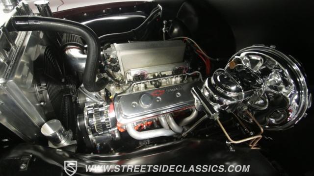 The engine is a powerful GM Performance Parts 350 Ram Jet V8 crate motor that\'s been barely broken in since it was purchased for $7k directly from a GM dealer, and it performs beautifully in this truck with plenty of horsepower and torque on tap whenever needed. Additions include electronic fuel injection, a performance cold-air intake, long-tube headers, a March serpentine belt system, a big aluminum radiator and electric fan, and, of course, the polished valve covers, bright accessories, and steel-braided lines that all help add nice pop to the satin-black engine bay. Backed by