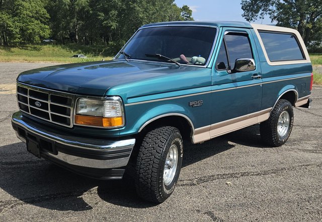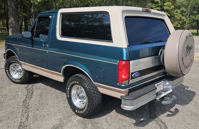 Amazing original condition. This is a stock 1996 Ford Bronco Eddie Bauer with the 5.8L. The only mods are that the radio is currently an Android Auto touch screen, Airlift bags on the rear axel, and a trailer brake controller. Everything else is OEM or equivalent. My local Ford dealer has just rebuilt the rear axel, replaced wheel bearings all the way around and serviced the A/C system in Sept. 2025 and a complete fuel system in 2024. The tires are Firestones and have about 10k miles on them. The dash, overhead display and ECM was rebuilt in April 2025. New battery, starter, and alternator over the last year. There is no rust on the body. Only a couple of dents; driver door, hood and just above windshield (passenger side) and on tailgate. The interior is original and has only minor cracks on the armrest. The seats and carpet are in great shape. The engine and trans work great but are high mileage. To my knowledge neither have been rebuilt, however the car runs and drives almost like new. This truck is currently my daily driver. It has had an easy life because of how many things are factory. It has the factory spare tire that is still holding air. From what I've seen on Car Facts, no accidents and a clean history. There have not been any alterations to the truck. It is as the factory built it, minus what is listed above. This is an unrestored factory Bronco. Title in hand. Cash offers only.