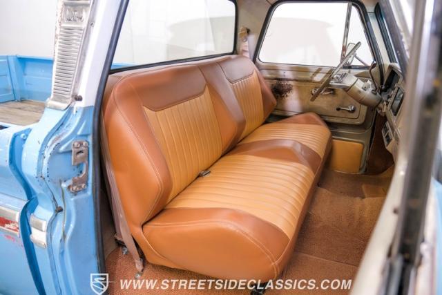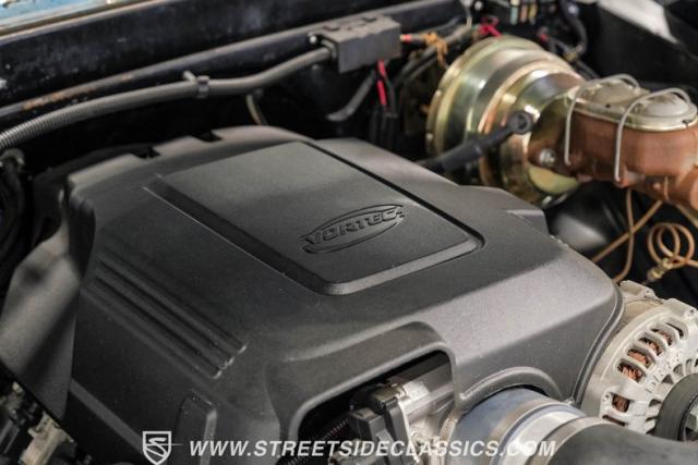 The 5.3L V8 powerplant, sporting 243 heads, pairs with a 4L60E transmission for smooth power delivery. The engine compartment is a study in clean engineering, featuring an aluminum radiator, electric fan, and Holley Terminator X system. Ceramic-coated headers feed into a FlowFX exhaust, giving this C10 a authoritative growl. Power steering and four-wheel power discs ensure responsive handling to match the truck\'s muscular looks.