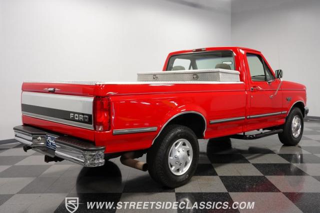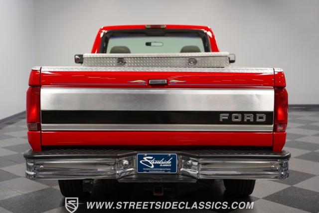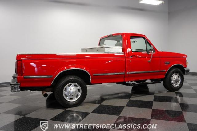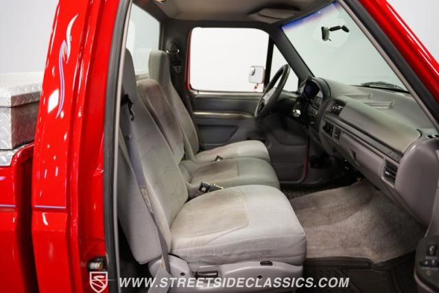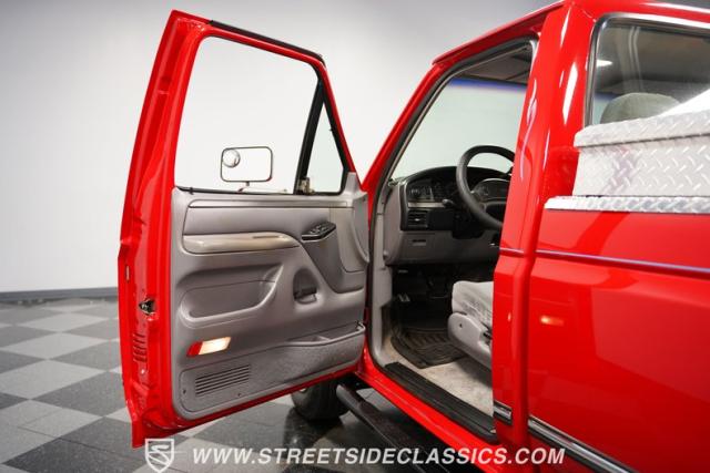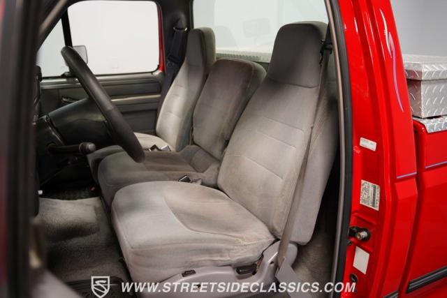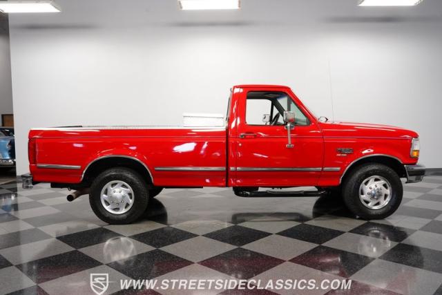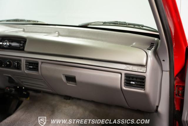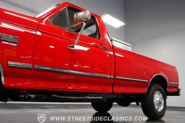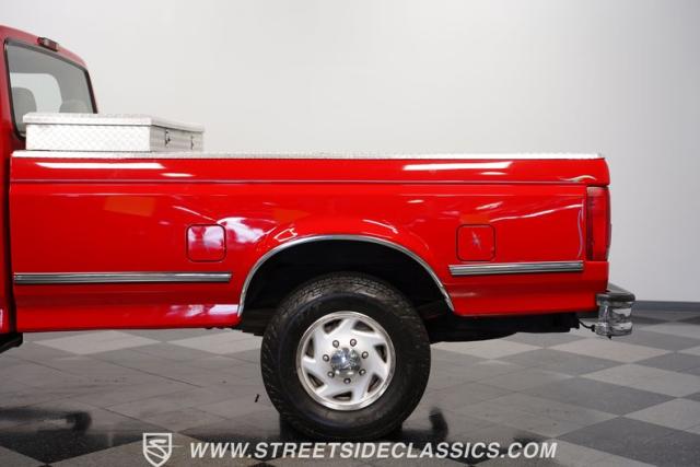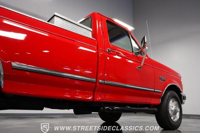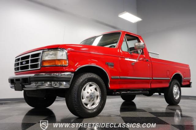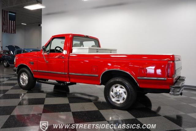 This 1996 Ford F-250 lives up to its working-class reputation with a tough-as-nails appearance in rich red paint. Custom pinstriping adds a distinctive flair to its bold truck lines. Built for work and show, the exterior has practical upgrades: a heavy-duty toolbox, diamond plate bed rail tops, durable bed liner, protective bed mat, and functional side step bars. The 16-inch wheels support 245/75R16 tires, delivering maximum traction and load-carrying capability.