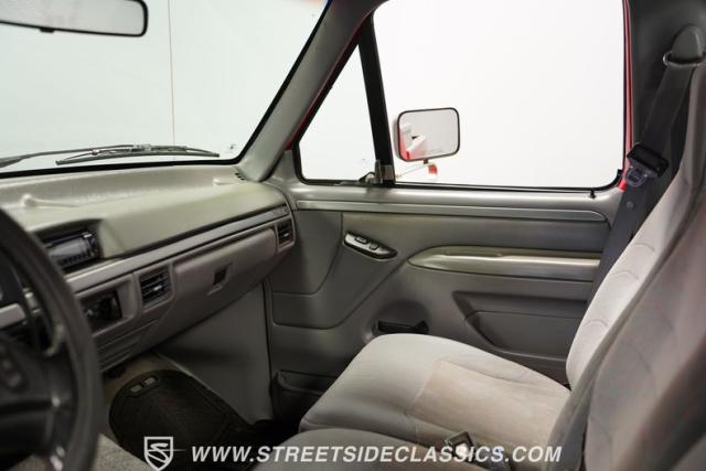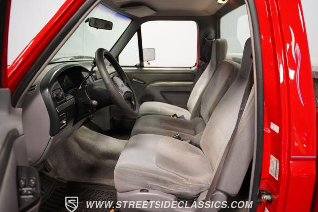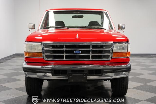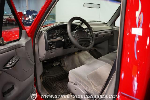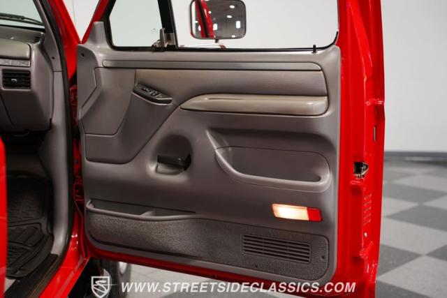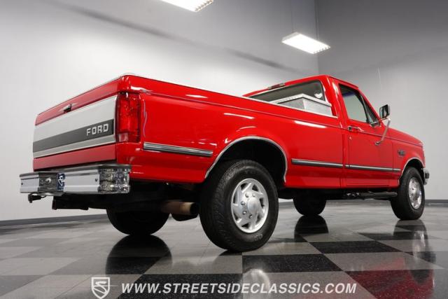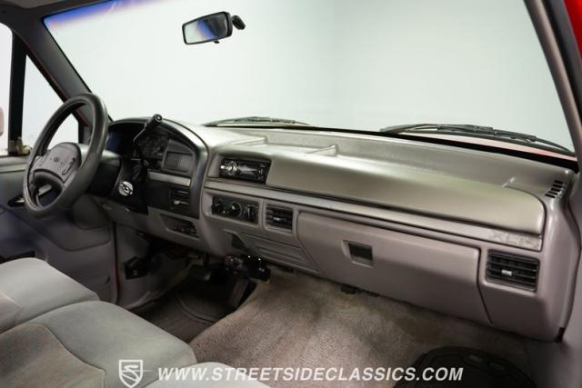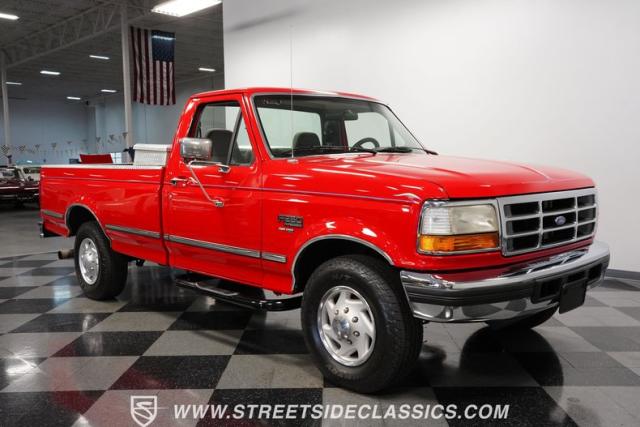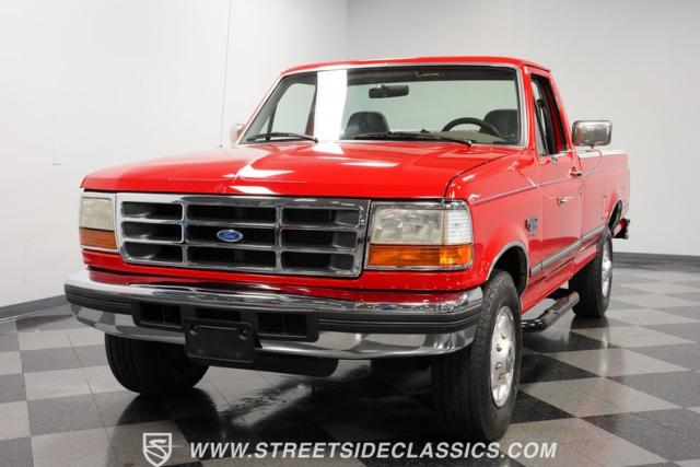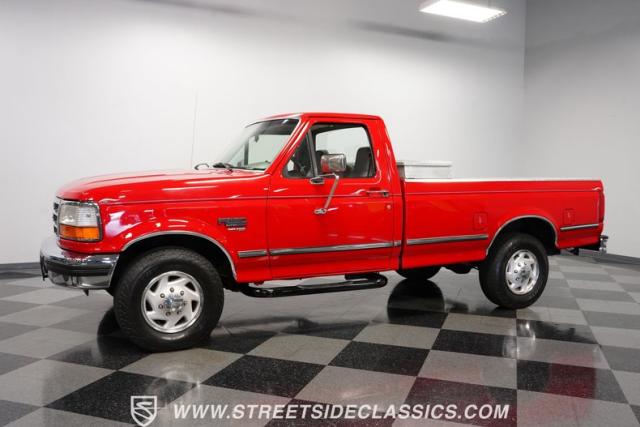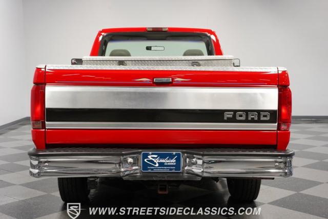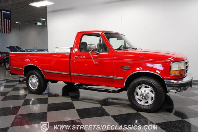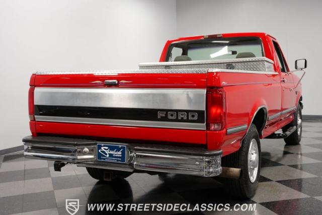 This 1996 Ford F-250 lives up to its working-class reputation with a tough-as-nails appearance in rich red paint. Custom pinstriping adds a distinctive flair to its bold truck lines. Built for work and show, the exterior has practical upgrades: a heavy-duty toolbox, diamond plate bed rail tops, durable bed liner, protective bed mat, and functional side step bars. The 16-inch wheels support 245/75R16 tires, delivering maximum traction and load-carrying capability.