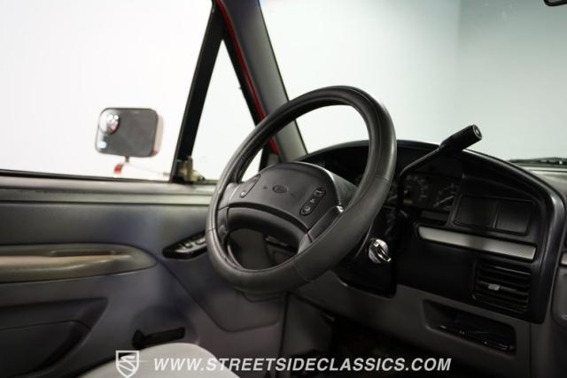 The gray cloth interior delivers XLT-level comfort without sacrificing utility. A split-bench seat with a fold-down center section adapts to your needs, whether hauling crew or cargo. The column-mounted shifter maintains an open, spacious cabin feel. Air conditioning keeps you comfortable during long hauls, while power steering reduces fatigue. The AM/FM stereo with auxiliary input and Bluetooth connectivity provides entertainment on any journey.