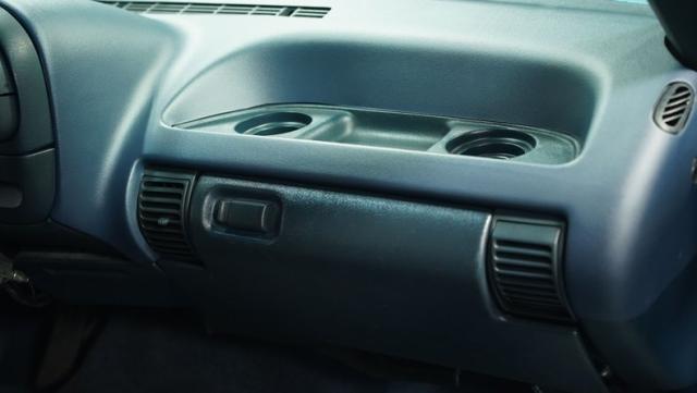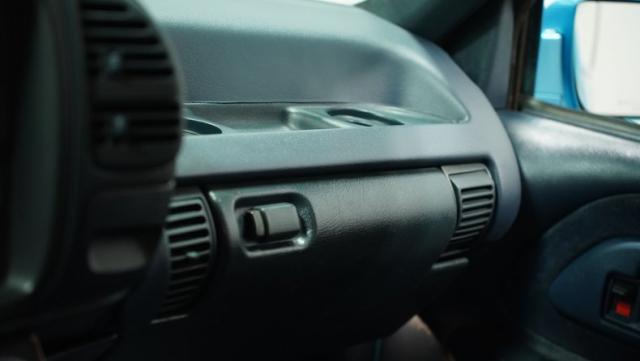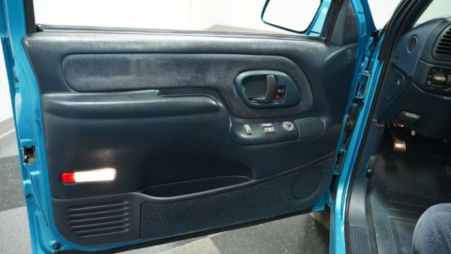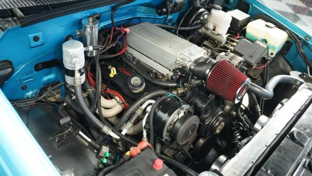 Inside, the blue interior maintains a clean, cohesive look that complements the exterior. The cabin strikes a balance between stock charm and modern convenience. Cloth bucket seats provide comfort for long drives, while the column shifter and center console offer easy access to controls. The interior\'s crowning glory is its audio system - an auxiliary Bluetooth head unit brings modern connectivity, while two JL subwoofers housed in a blue carpeted speaker box behind the seats ensure your favorite tunes hit hard. Air conditioning keeps things cool, essential for those sweltering summer cruises.