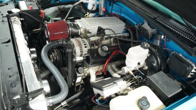 Under the hood, this C1500 packs a punch with its 5.7 Liter V8 engine. It\'s not just about raw power - the engine bay is a showcase of thoughtful upgrades. A Be Cool aluminum radiator with dual electric fans keeps temperatures in check, while a Holley intake optimizes airflow. The 4-speed automatic transmission (700R4) handles gear changes smoothly, making for effortless cruising. Performance and handling are further enhanced by the air ride suspension, which includes upgraded front control arms, a four-link rear end, and RideTech Fox shocks. Stopping power comes from power disc brakes all around, with drilled and slotted rotors up front and an SSBC rear disc kit installed in 2019.