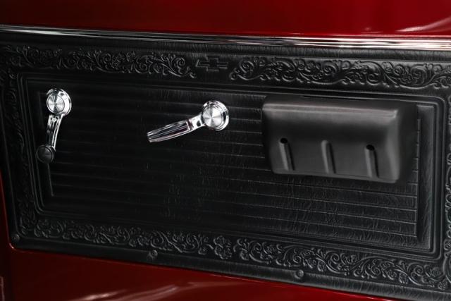 INTERIOR: Inside strikes a careful balance between vintage charm and modern convenience. The factory-style gauge cluster maintains its original appearance, but it\'s actually a set of RetroTech digital-analog instruments - complete with a tachometer and even a clock. The stereo follows the same philosophy: a retro-style digital unit that fits neatly in the factory location and uses original-style knobs for a seamless appearance. Even the air conditioning controls have been thoughtfully upgraded, now operating with smooth electric slides instead of the old cable system. Bright LED interior lighting adds clarity and reliability, while a completely updated wiring system with a modern fuse block ensures everything functions safely and dependably. Visually, the interior is just as impressive as the technology behind it. All the metal surfaces are painted as slick as the exterior. The seat has been re-cushioned and reupholstered for comfort, complemented by new seat belts, deluxe door panels, armrests, window cranks, and handles. It features the optional headliner, a cushion-grip steering wheel on a tilt column, and fresh carpet with matching floor mats to finish it off. The result is a cab that feels classic at a glance - but thoroughly modern where it matters.