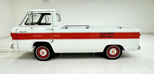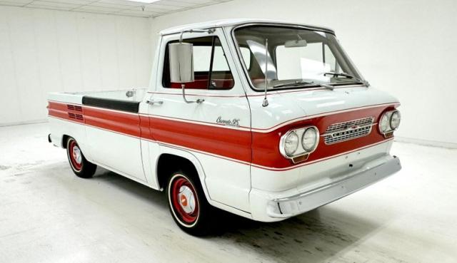 A neat example of a not oft seen Corvair truck in pickup side ramp form. The paint is mostly good and the interior looks the 60\'s part. All steel and rust free on the bodywork, and a smooth running air cooled engine. Ralph Nader can kiss my ass!