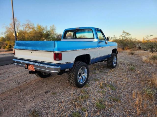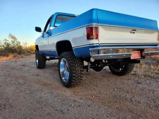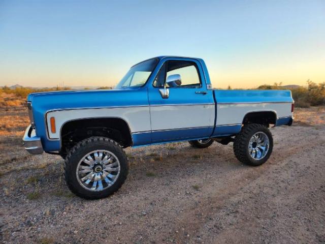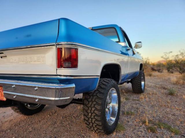 1977 Chevrolet Short Bed !!! Extra clean 4x4 shortbed square body truck. It\'s a beauty. With fresh CHEVY Blue pearl paint with a two tone Chevy white. Has all of the original trim that everyone always desires. Nice and clean custom interior. All new Bilstien 5100\'s Shocks, Disc brakes and new hubs in front, also new drums and pads in rear. Has power brakes,power steering with a tilt steering wheel. This truck is 8 lug with the heavy duty axels and suspension. All new upper and lower ball joints. Inner and outer tie rods and drag link bar with new stabilizer shock.. This truck runs drives and rides like a 2023 stiff no shake or rattles. Great for Saturday cruise or take to any truck show, its a show stopper. Has 20 inch rims and 33/12/50 inch tires, not even a 150 miles on them nor the truck engine. Brand new 3 core radiator with factory fan shroud runs nice and cool, with a 350 trans, a new 350 engine with a RV cam. Eledbrook intake with a eledbroke 650 carburetor. Headman headers with a series 10 flowmaster muffler sounds great. Polished water pump, Polished alternator, Polished power steering pump and all Polished brackets. Looks nice and clean. This is a turn key ready truck, Truck needs nothing.. Please Note The Following **Vehicle Location is at our clients home and Not In Cadillac, Michigan. **We do have a showroom with about 25 cars that is by appointment only **Please Call First and talk to one of our reps at 231-468-2809 EXT 1 ** FREE Consignment Visit Our Site Today Easy To List Your Vehicle and Get it Sold in Record Time.