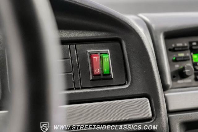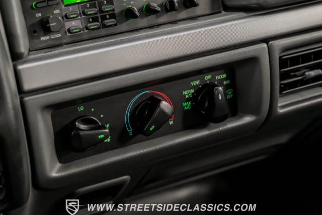 Inside, the gray cloth interior offers a comfortable split-bench seat for long hauls. The cabin features power steering and air conditioning for driver comfort. Black vinyl flooring provides durability for work or play. The clean, straight dash and well-preserved door panels speak to this truck\'s care over the years. A column shifter and seatbelts both front and rear round out the practical interior features.