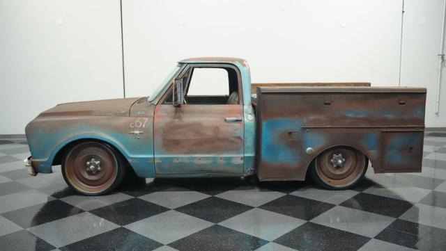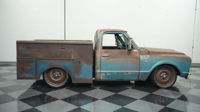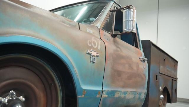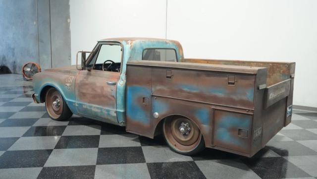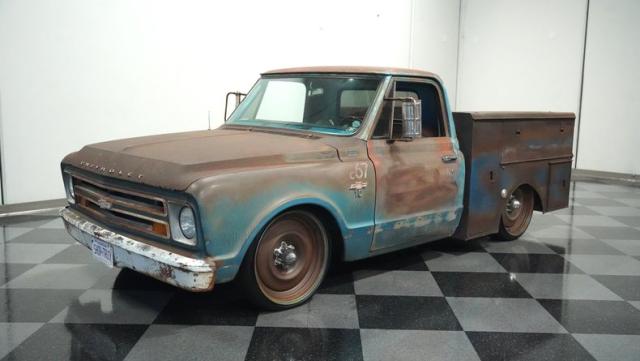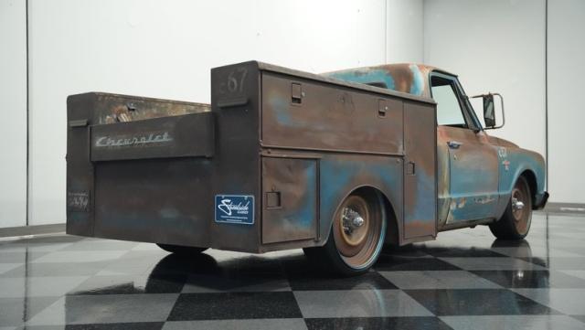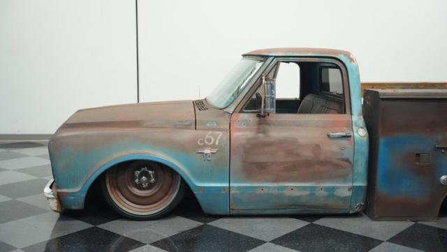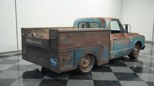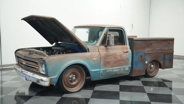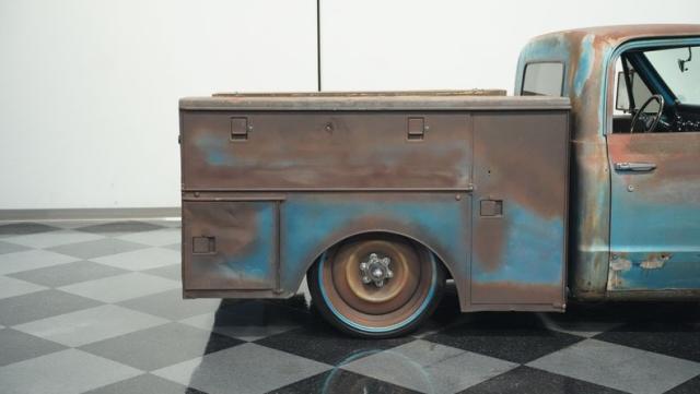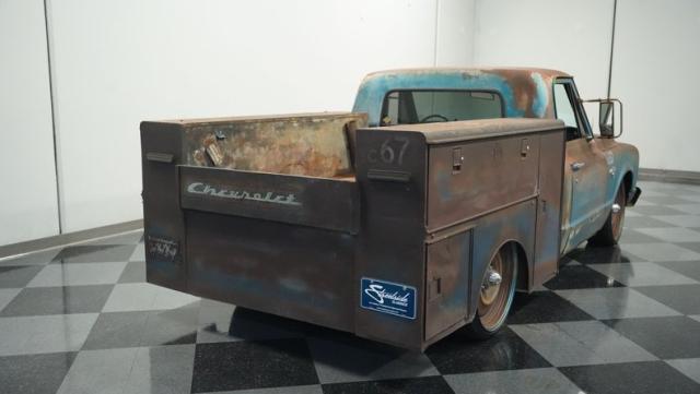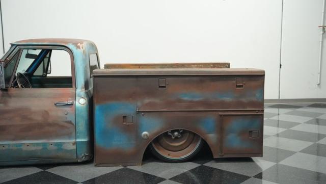 Who says a work truck has to be boring? Not us! This patina-finish 1967 Chevrolet C10 truck proves just how cool one of these classic trucks can be. This finely-aged C10 wears a very useful utility bed full of storage, plus a second battery located in a cabinet behind the passenger seat to run a compressor if desired. This truck is not only full of character, it has an attitude as well, thanks to its lowered stance achieved with air bags with a step-notched frame in the rear, some Ridetech suspension components and a set of aged 22-inch steelie rims wrapped with 255/30ZR22 low profile tires.