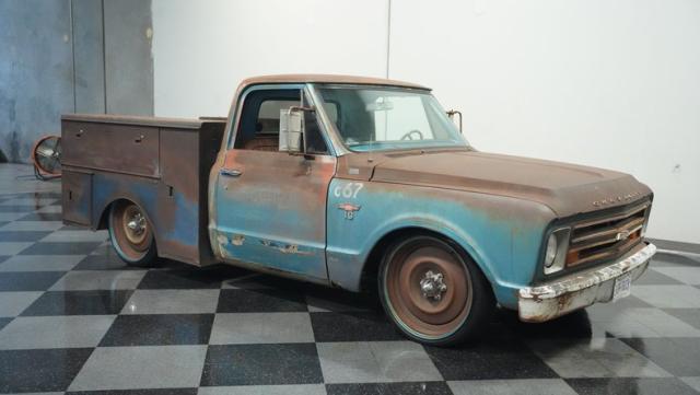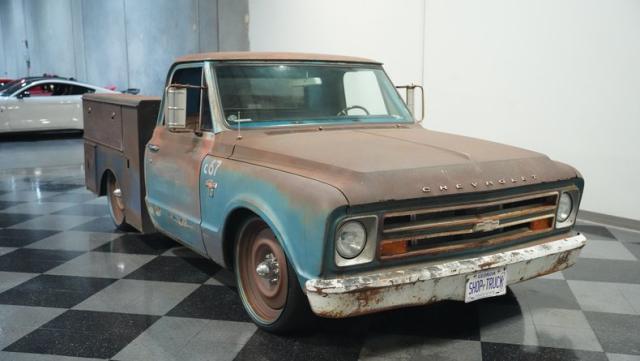 With numerous upgrades and a cool patina finish, this 1967 Chevrolet C10 is a highly usable truck that attracts attention where ever it goes. Perfect for fun cruising and to use as a shop truck or work truck. Anyone who sees this truck will remember it, presenting a unique marketing opportunity for a savoy business owner. Call today!