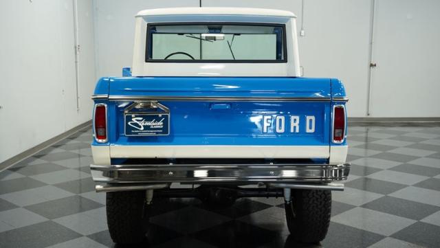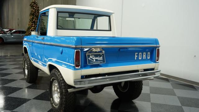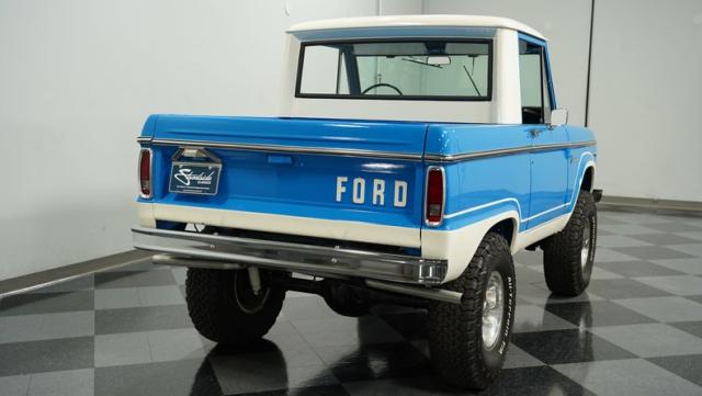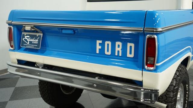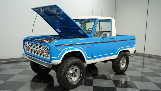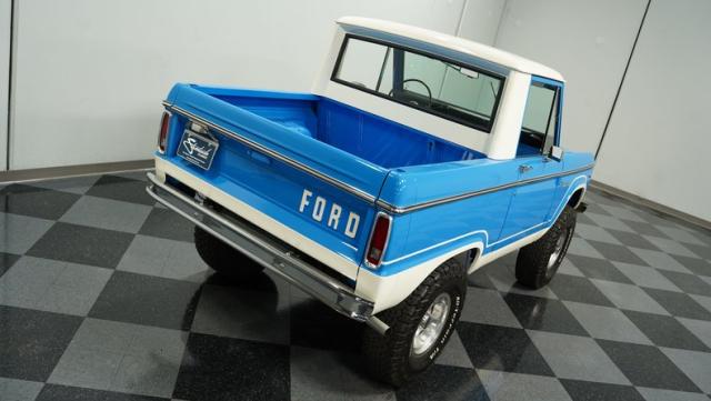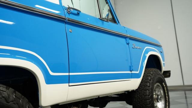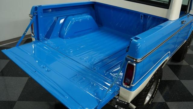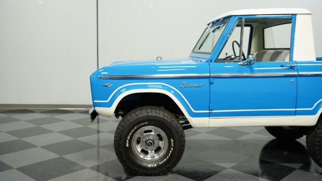 This Bronco comes with a restored 302 V8, badged and boasting a 289 HEI distributor with a Holley four-barrel carb and long tube headers. The engine, color-matched to the Bronco\'s exterior, sits proudly in a clean, well-presented bay, complete with polished valve covers and an aluminum radiator. Power steering and power brakes ensure this beast is as tame on the roads as it is wild at heart. Riding on a Dana 60 front and a 9\" rear axle, this Bronco is ready to conquer any terrain.