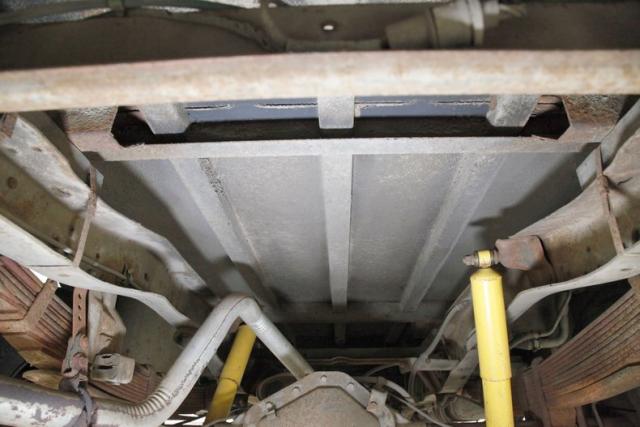 Keeping with the unrestored theme we are met with a patined but overall solid undercarriage. Road dirt and some rust dance throughout the bottom side all the while having solid steel making an appearance for the frame and flooring. We note a few repairs on the body hangers but overall things remain structurally sound. Power disc brakes are noted in the front along with an independent coil spring suspension and in the rear are power drums along with leaf springs to provide the ride.