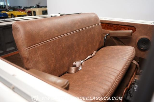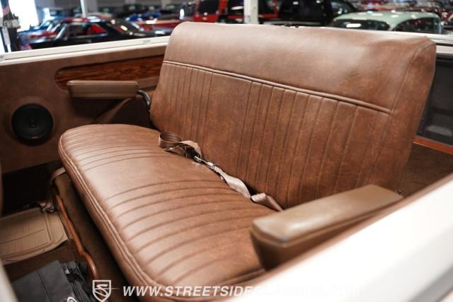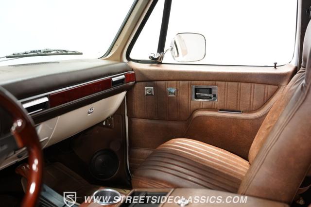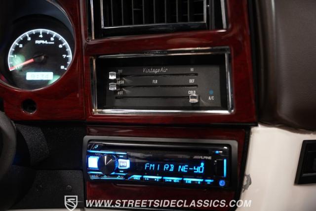 The fully custom brown vinyl interior is as bold as it is inviting. Bucket seats cradle you, while the leather-wrapped dash showcases a forward cluster of Dakota gauges, vintage air conditioning, and an Alpine stereo to keep you comfortable and entertained on every journey. Kicker speakers in the rear panels and Queior speakers in the front kick panels surround you with rich sound. The center console and four-wheel-drive setup bring a touch of brawn to this well-crafted cabin.