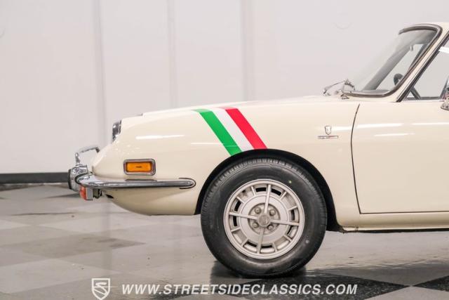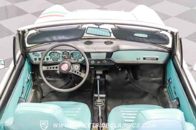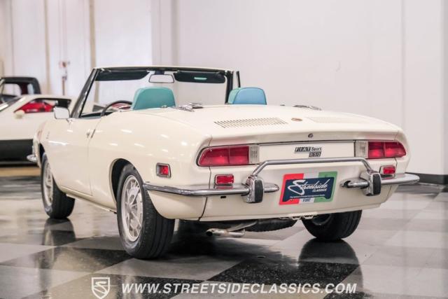 This 1972 Fiat 850 Sport Spider, cloaked in a crisp white paint job with bold black decals, embodies the timeless appeal of Italian automotive design. Its compact yet curvaceous body, complemented by polished chrome bumpers and trim that catch the light just right, has an allure all its own. Mounted on a set of authentic 13\" Cromodora wheels wearing new 175/70R13 tires from 2023, this nimble roadster is poised to tackle winding roads with the same spirit as its legendary Ferrari brethren.