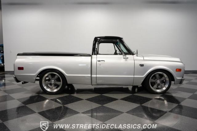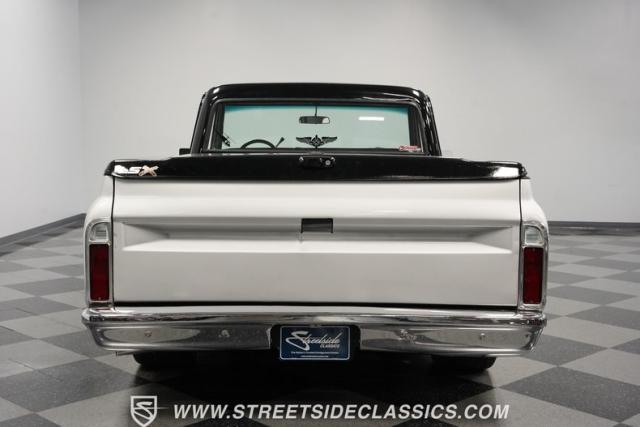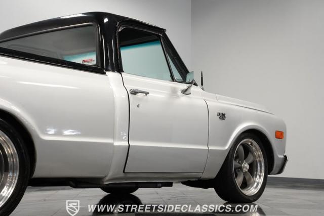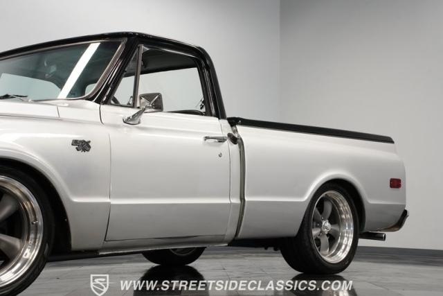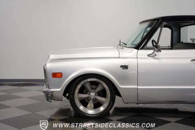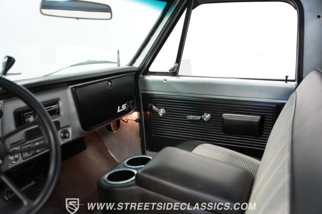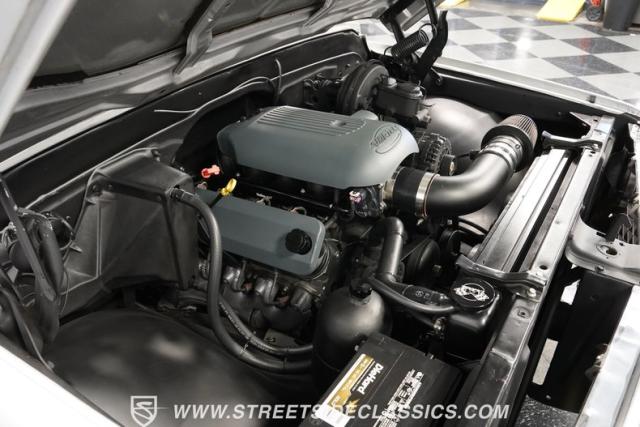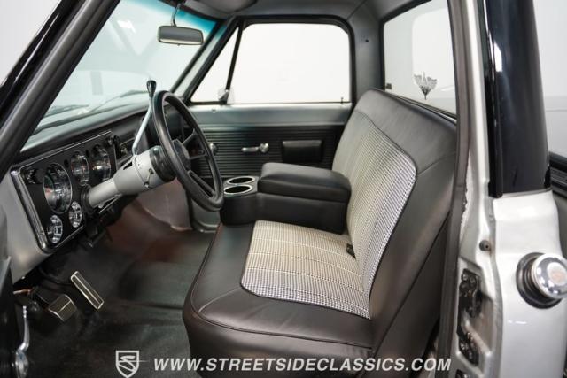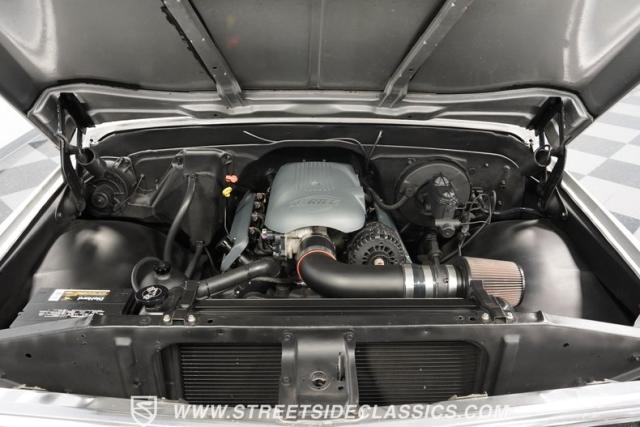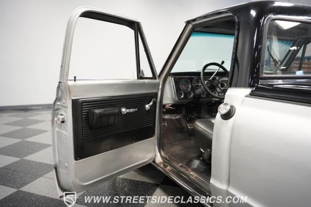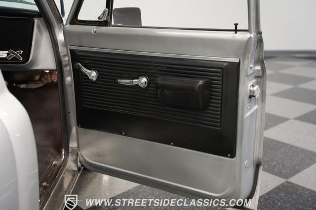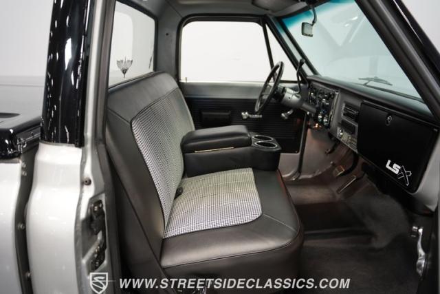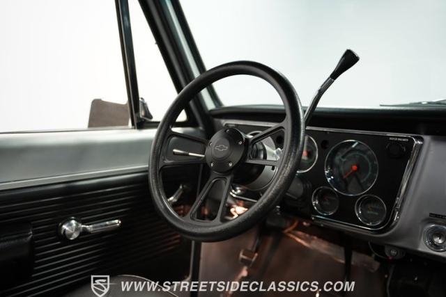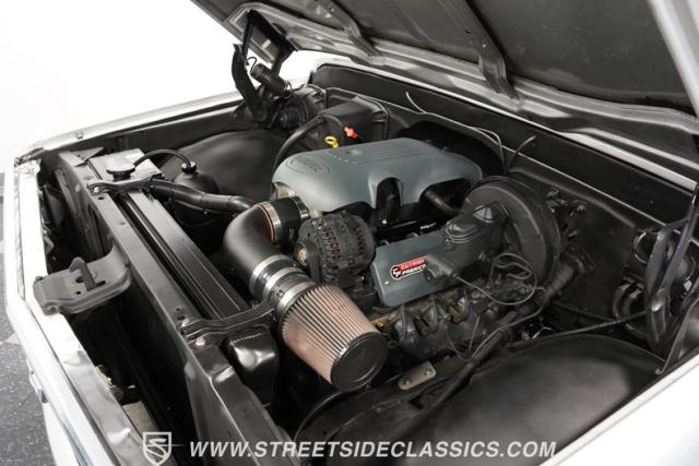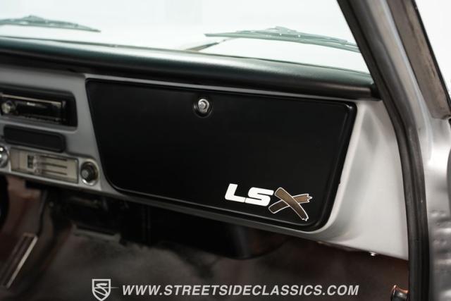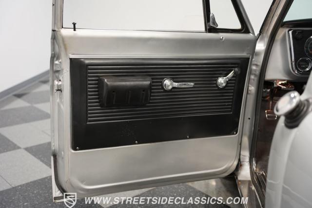 Powering this C10 is a 5.3L LS-based Vortec V8 engine sourced from a 2003 Suburban. It\'s coupled to a 4L60E four-speed automatic transmission. The engine bay features a clean, black paint scheme. A Dewitts radiator controls temperatures, while a FlowMaster dual exhaust system produces a muscular sound. A sturdy 12-bolt rear end transfers power to the pavement, and power disc brakes up front offer strong stopping ability.