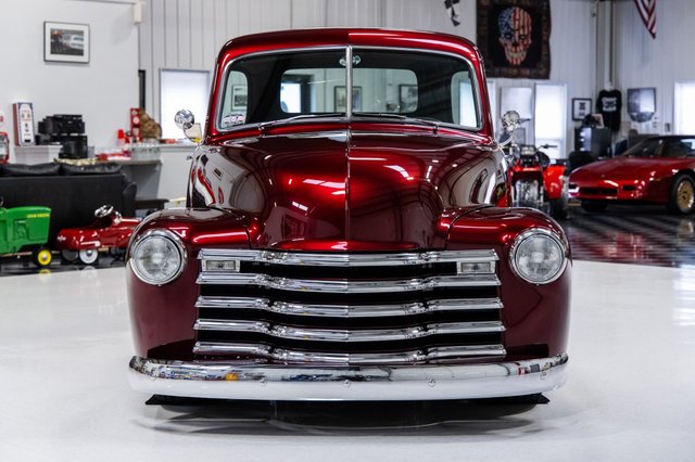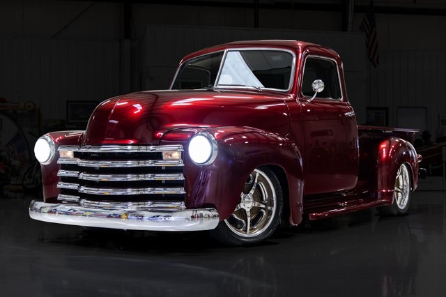 In the pursuit of perfection over $450,000 was invested in this magnificent 1951 Chevrolet 3100 5-Window Custom Pickup which is documented with receipts that are included. It was rendered by car designer and trendsetter Eric Brockmeyer Design. The Texas based build collaboration was between Restoration Techniques, PAINTHOUSE and Stitch by Stitch. It was featured at SEMA and is the recipient of multiple Autorama 1st place awards including the prestigious Millwinder Award. Countless hours were spent crafting the mostly original sheet metal to ensure it was laser straight from every angle. It was dressed in the custom color of Dark Maroondy Pearl which is a PPG paint finish from the Vibrance Collection. The craftsmanship of the body and paint is at an extremely high level of quality. It was outfitted with all new tinted glass and trim including the tucked bumpers. It's equipped with LED headlights and taillights. The bed wood floor was custom stained in a complementary matte color and decorated with polished trim including a fuel filler cover for the Ricks fuel tank. It rolls on custom Schott Accelerator 18” wheels with a ceramic bronze and polished finish. The high-end interior is defined by a combination of meticulously crafted materials, advanced technology and superior comfort. The dash, paneling, full length console and bucket seats were covered in hand stitched Chocolate Hydes Automotive premium leather. Some of cabin characteristics include Dakota Digital gauges, Vintage Air Conditioning, power windows, Ididit tilt steering column, EVOD steering wheel, polished trim, cup holder, storage compartment and German weave carpeting. The crisp sound system consists of an Alpine 8” head unit with rear camera along with Phoenix Gold amplifiers, front speakers, rear speakers and subwoofers. The engine compartment was designed to be clean and sophisticated. The entire truck was rewired with a new American Highway wiring harness which is discreet throughout. The backside of the hood, firewall, inner fenders, radiator core support and battery cover was hand crafted. These pieces were painted in a complementary matte color. It's powered by a Nickens Brothers LS3 V8 engine and 4L65E automatic transmission. Some of the engine accessories include Greening Auto Company black billet valve covers, painted fuel rail covers and March Performance front runner system. It's cooled by an aluminum radiator with dual SPAL electric fans. It breathes through ceramic coated headers and a GAP Racing 3” exhaust system with polished Black Widow mufflers. The power is transferred to the pavement through a 9” Truetrac rear end with Strange 31-spline axles and 3.25 Motive gears. The well-engineered undercarriage was designed to easily accessible and driver friendly. It rides on an Art Morrison Sport GT Chassis that was powder coated black. It's equipped with power rack and pinion steering. The chrome front control arms and Strange coil over shocks at all four corners handle the road well. The Wilwood 4-wheel disc braking system with red calipers and drilled rotors provide excellent stopping power. It's also equipped with an E-STOPP electronic emergency brake. This vehicle has been completely serviced and detailed which is documented with an invoice. From the MS CLASSIC CARS Collection.