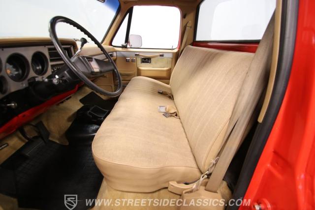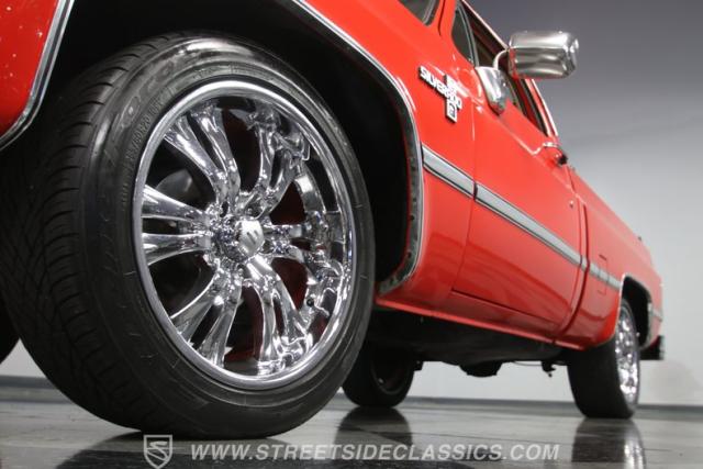 The exterior red is continued inside as an accent, and now it\'s joined by a tasteful tan. The comfy velour bench seat, good door panels, and full carpeting are part of the attractive driver-ready attitude. The Silverado trim also means you get a loaded truck with air conditioning, power windows, cruise control, and now an upgraded AM/FM/CD stereo. And it\'s a true cruiser with a tilt steering column and wraparound gauge panel that gives you a commanding driver position. There are even dual fuel tanks for the long haul.