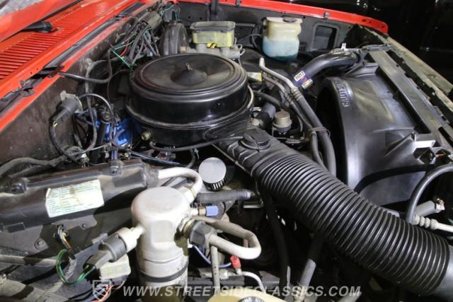 We love Chevy\'s 350 cubic-inch small block V8 because it strikes a nice balance of stoutness and power. This one remains looking stock and sturdy with a four-barrel carburetor on top. The chambered exhaust helps to give this V8 a nice note, but its real enjoyment is just as a solid driver. That\'s thanks to easy cruising features like the three-speed automatic transmission, power steering, power brakes, front discs, and modern/grippy tires.
