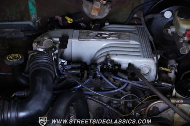 Under the hood, everything looks well put together. An aluminum radiator helps keep the engine of this truck at the proper temperature. The stock 5.0-liter with fuel injection gives it plenty of pep. Power is sent through a 4-speed automatic transmission and an all-wheel-drive transfer case with a Ford 8.8-inch rear axle. The front suspension features torsion bars, shocks, and a rack-and-pinion steering setup, while the rear uses leaf springs with shocks. For all its old-school looks, it drives remarkably well.