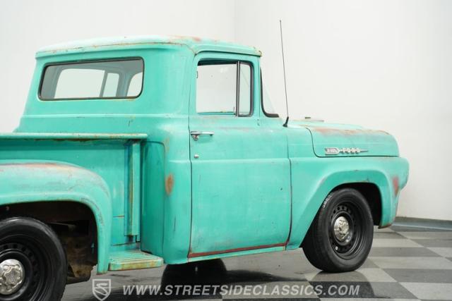 This 1960 Ford F-100 Patina AWD Restomod is an old-schooler brought back to life. The preserved rust marks and imperfections serve as a road map of its long days of service as a dependable driver. Although it looks rough, it\'s that mystic that draws the attention. Call Today!