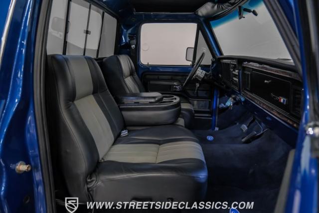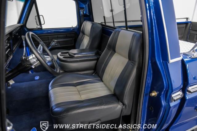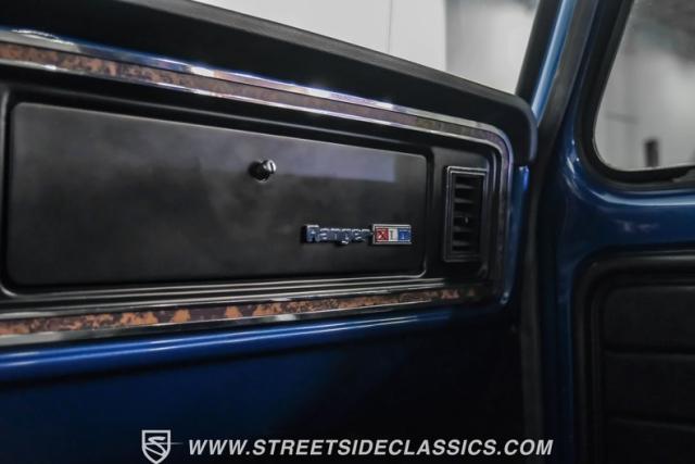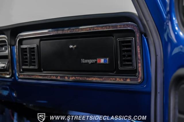 Inside, the Ford steps into today with an all-new black and gray custom interior that embraces both form and function. Buckets seats with a folding armrest, reupholstered in leather, offer a comfortable vantage from which to command the road. A custom steering wheel, updated stereo system, and Dakota digital gauges blend seamlessly with the original design, creating a cockpit that\'s both nostalgic and ahead of its time. Air conditioning and power steering are just the cherry on top, making every journey in this Ranger XLT as comfortable as it is thrilling.
