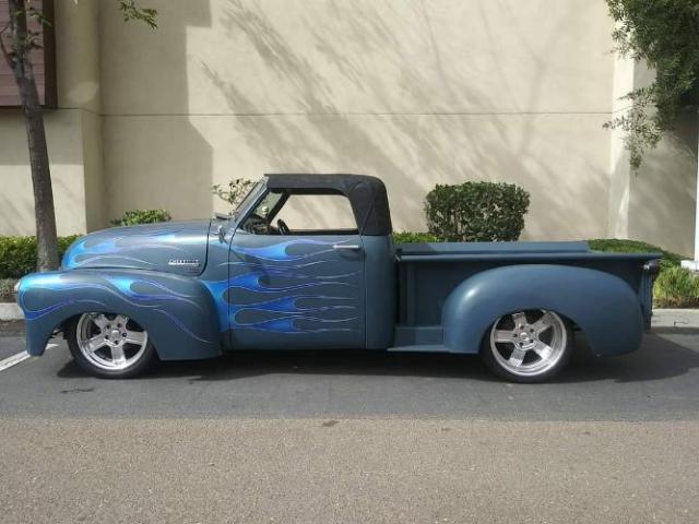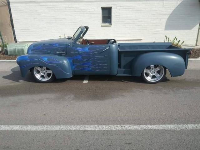 1950 Chevrolet 3100 Pickup truck Roadster! Custom Street Rod NICE!! It\'s a one of a kind street rod! Extensive Build: It has a removable Carson top so it can be a Roadster pickup also. It\'s a fantastic driver and very fast built for turn key performance; New blueprinted performance built Estimated around 400 h.p. 350 V8 Chevy crate motor. Modern Chassis, Custom Polished Aluminum EXTRA WIDE WHEELS and Low Profile Tires. Chopped and channeled Customized Steel Body. Original Steel Fenders Widened 6\'. Windshield custom tilt A pillar. Also Has Convertible Carson Style Top frame custom construction and upholstered. New Custom 2 1/2\' dual exhaust with Flow Masters, Sounds Great! Locar style shifter, Turbo automatic transmission. Power disc front brakes, power steering, Hei distributor, New Aluminum radiator. Fan and electric fan. New Edelbrock 4 Barrel Carb. Great Driver. Custom Large capacity gas tank, lots of custom metal work, Etc... This is a super fun truck to drive! It drives and rides so nice you have to drive to really appreciate. It\'s really got a great look too. A true one of a kind. Has the popular Suede paint which is a special semi-gloss custom paint you see on some new exotic cars. Also has gloss paint pin-striped flames which were done by a famous pinstriper. Newly recovered in Leather Bucket Seats with a rustic interior which is a popular look. Unique Custom Gray Woodgrain Bed Floor and Polished Aluminum Diamond Plate Interior Bed Sides. Hidden gas cap, pocket remote battery disconnect switch. Clean Title with original VIN number and ID tag.cylinders: Please Note The Following **Vehicle Location is at our clients home and Not In Cadillac, Michigan. **We do have a showroom with about 25 cars that is by appointment only **Please Call First and talk to one of our reps at 231-468-2809 EXT 1 ** FREE Consignment Visit Our Site Today Easy To List