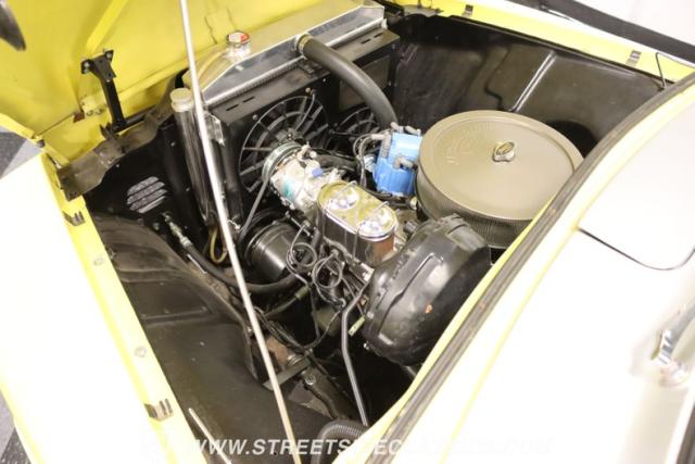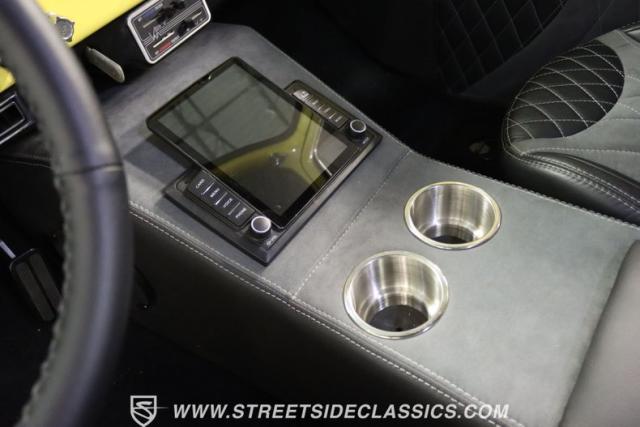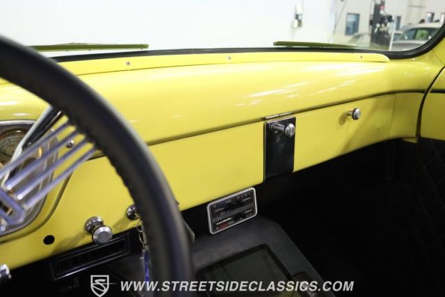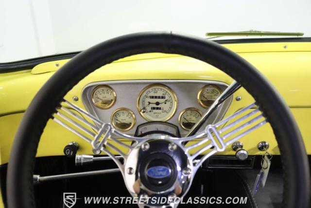 Inside, this classic Ford is a black leather haven, detailed with a finesse that speaks volumes of its custom-built interior. The seats in supple black leather, the thoughtful inclusion of a console with cup holders that also houses an AM/FM Bluetooth sound system, exude comfort and sophistication. Adding to this rich tapestry of modern meets classic is the air conditioning system ensures the cabin remains a cool refuge on those blistering summer days. The tilt column with a custom steering wheel, coupled with VDO classic style gauges, merges functionality with style, creating an environment where every moment behind the wheel is a celebration of past and present.