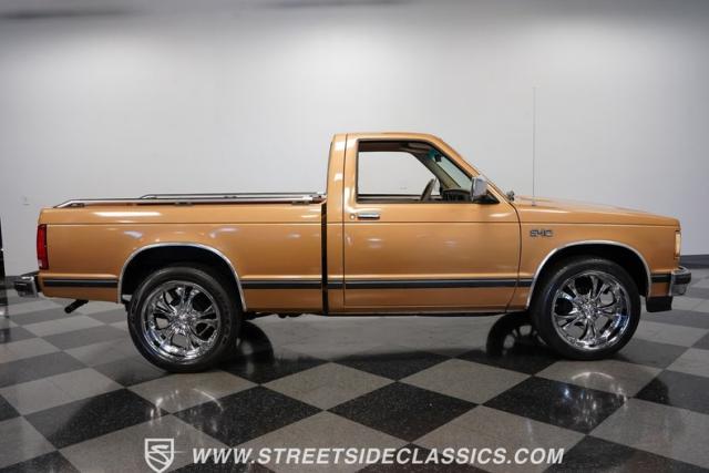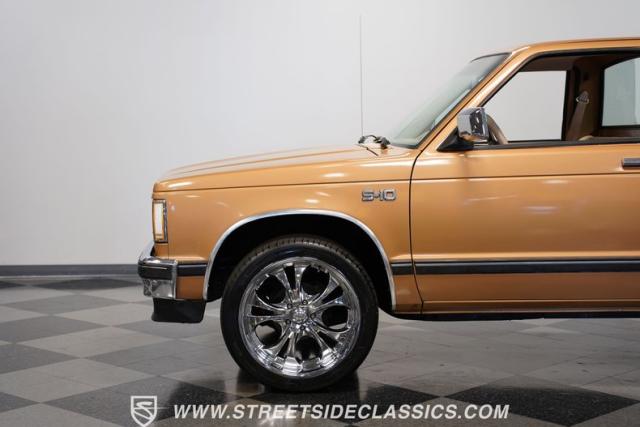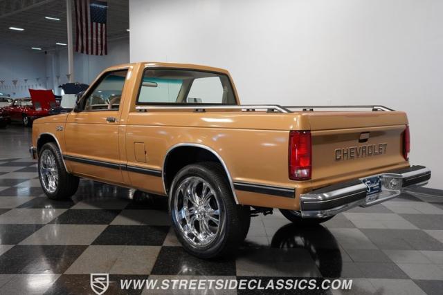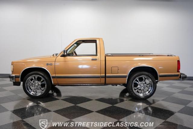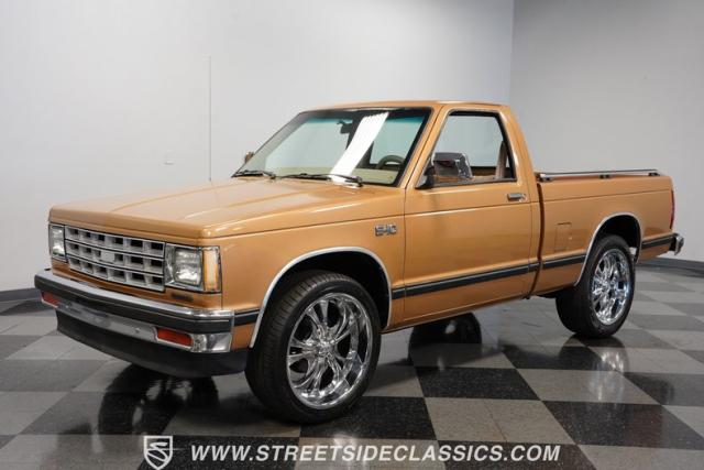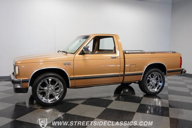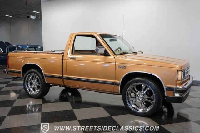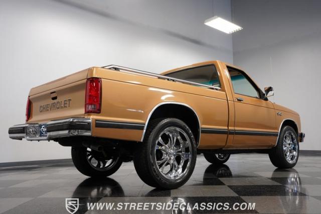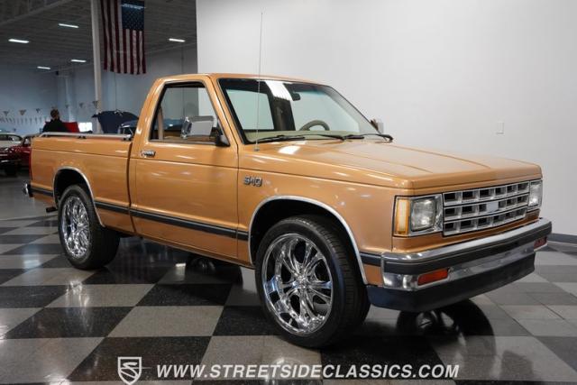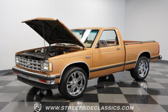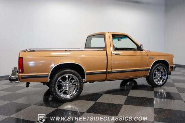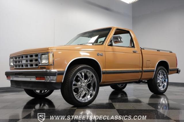 This 1984 Chevrolet S10 defines pickup truck versatility. From its gold finish to its custom wheels, this S10 blends classic hauling ability with street-smart style. Call today!