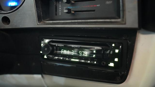 The black interior features a custom upholstered seat done with ostrich skin patterned inserts, upgraded digital gauges in the stock locations, a tilt steering column, custom polished steering wheel, cold air conditioning and a Sony AM/FM/CD/Bluetooth radio that plays through amps hidden under the seat and subwoofers located behind the seat for maximum music enjoyment when cruising.