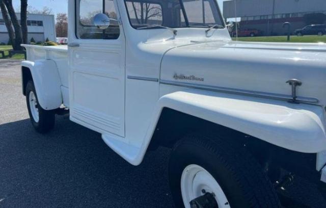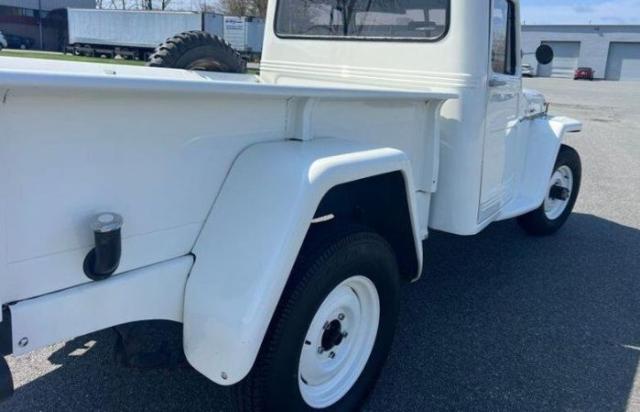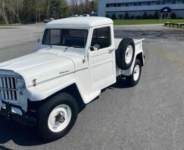 1960 Willys Jeep pickup is powered by a 226ci Super Hurricane inline-six linked to a three-speed manual transmission and a dual-range transfer case. Previous owner stated that the engine had been rebuilt around 2019 and also replacement of the water pump, oil pump, ignition coil, spark plugs, wheel bearings, suspension shackles, and battery. The current owner just had $11,000 in service completed that included: - A minor overhaul of the transmission and transfer case - Flywheel Service - New Clutch - Stabilizer Shocks - New Speedo Cable - Replacement of E Brake Cables - Rebuilt Drag Link - Bell Arm Replacement - ALL gaskets replaced and sealed - New ignition switch - Install Voltage Regulator - Replacement of the Rear Main Seal The truck was repainted white in 2005, and equipment includes a front brush guard, a side-mounted spare wheel and tire, a spring-loaded antenna, vent windows, and black-painted bumpers as well as a black vinyl bench seat, a driver-side sun visor, a centrally-mounted rearview mirror, and a glovebox-mounted AM/FM/cassette stereo. This Willys pickup is now offered in Massachusetts with an owner\'s manual and a clean Massachusetts title in the seller\'s name that lists it as a 1962 model. The bench seat is upholstered in black vinyl that is complemented by gray door panels, black rubber flooring, and a body-color steel dashboard. Additional equipment includes a driver-side sun visor, a cabin fresh-air vent, a dome light, floor-mounted shifter and transfer case selectors, and a glovebox-mounted Alpine AM/FM/cassette stereo. The truck has been converted to a 12-volt electrical system. The two-spoke steering wheel features a Willys center emblem and sits ahead of centrally mounted instrumentation including a 90-mph speedometer and aftermarket auxiliary gauges. The five-digit mechanical odometer shows 70k miles, almost no miles were added under current ownership. Total mileage is unknown. The 226ci Super Hurricane L-head inline-6