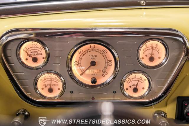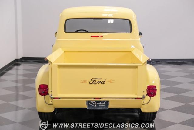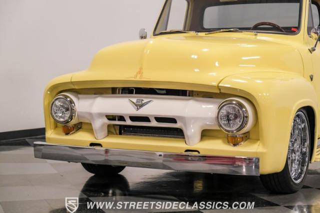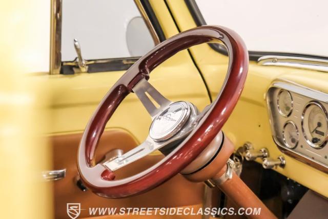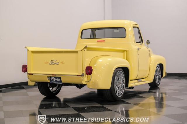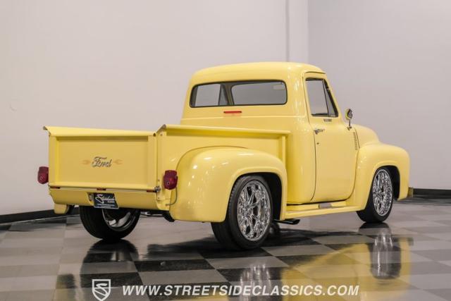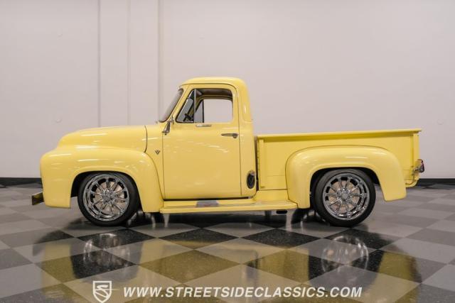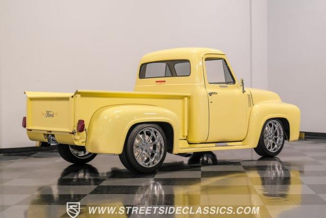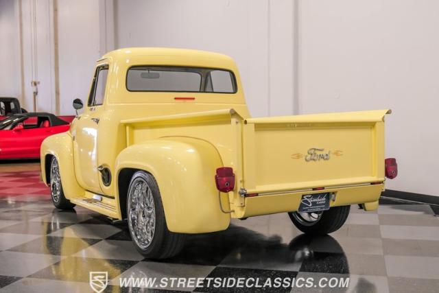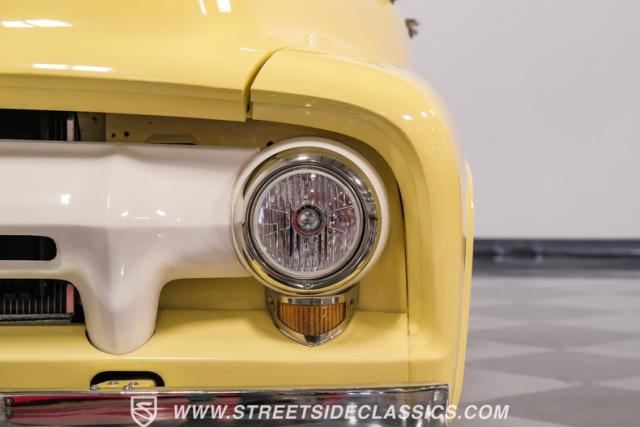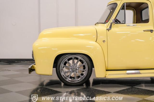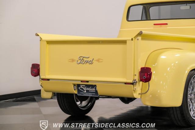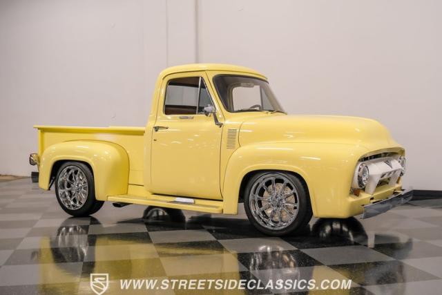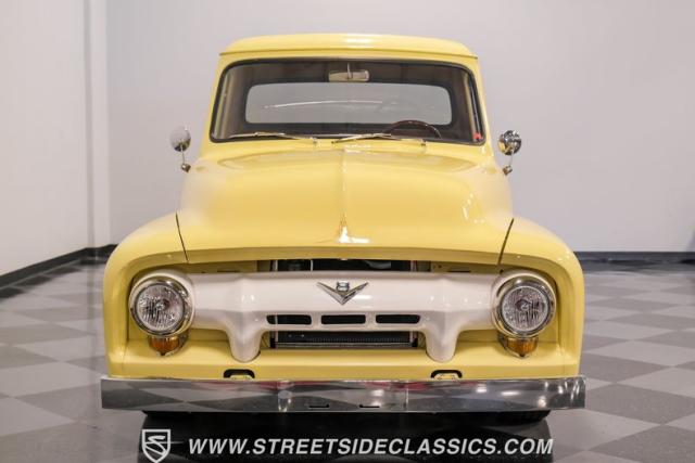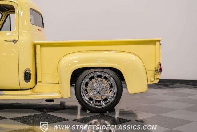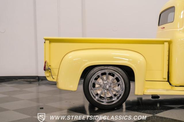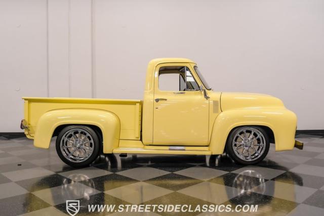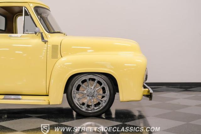 Let\'s introduce this 1954 Ford F-100 Custom Cab, dressed in a Light Meadow Wood coat that really seem to enhance the visual lines of this vintage beauty. Rolling on very stylish 20-inch chrome rims shod in 255/45ZR20 tires, they ensure both stature and stability are spoken for in equal measure. As an ode to Americana and craftsmanship, every detail-from the forward-tilting clamshell hood to the flush rear roll pan-reflects a commitment to excellence and an era revered.