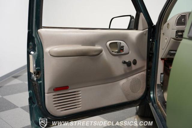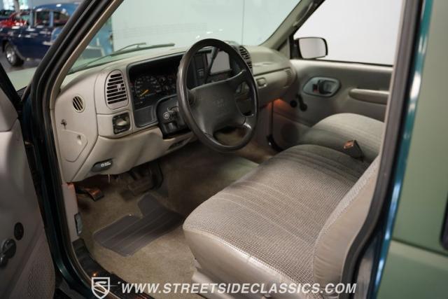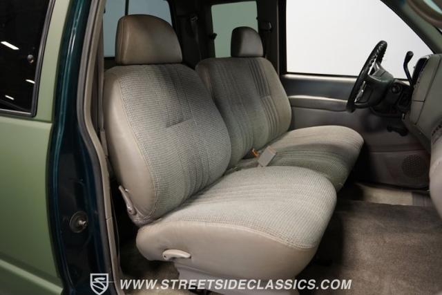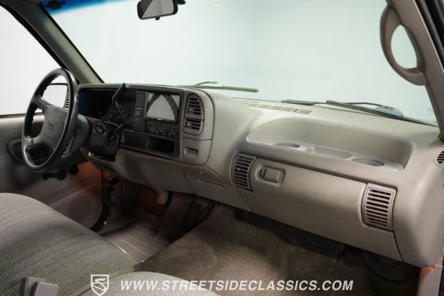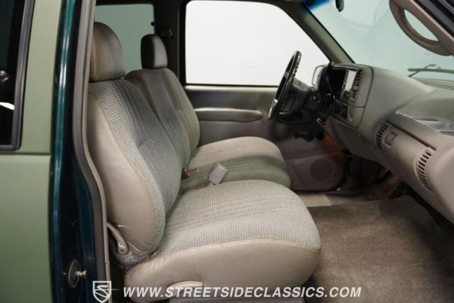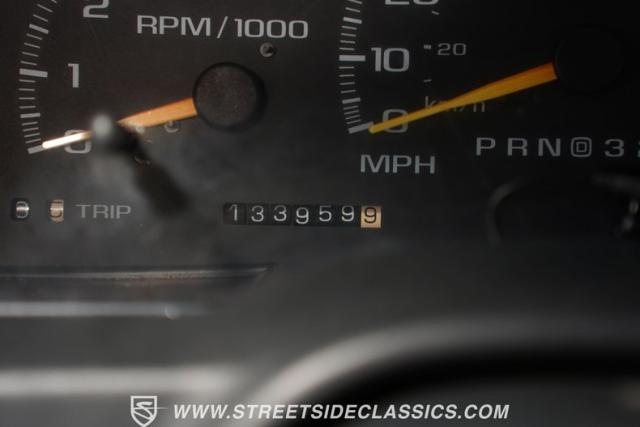 The gray cloth interior offers a comfortable and functional space for long hauls or quick trips. The split-bench seat provides ample room for three, while the extended cab area offers additional storage or seating options. A modern Sony stereo system with Bluetooth connectivity and a backup camera brings 21st-century tech to this 90s icon. The dash, in excellent condition, houses easy-to-read gauges and controls. Power windows, locks, and air conditioning ensure comfort in various situations. The steering wheel, positioned by a tilt column, gives the driver precise control over this capable machine.