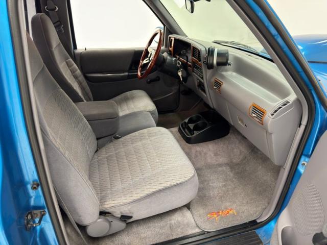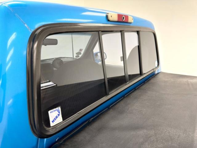 Monochromatic coverage was a Splash theme, and so we find the Lapis Blue Metallic paint covering the bumpers, grille, and side mirrors. Our consignor added a matching hood scoop and period popular tail light covers, while the original cool graphic and strip run down the fender and door. Not to outdone, the hood scoop wears flames in the graphic\'s same colors. Just about every possible automotive sticker cling to the sides of the truck while a rear wing holds to the back where we also find ladder bars, a parachute, dual exhaust, and a roll pan in place of a bumper. A sliding rear window overlooks a tonneau cover and an air filter in the scoop looks convincing. Staggered Weld DragLites and tires create a steep rake, aided by a 3\" drop up front, and complete the look of this pro street wannabe and the exterior presents nicely and is imperfection free.
