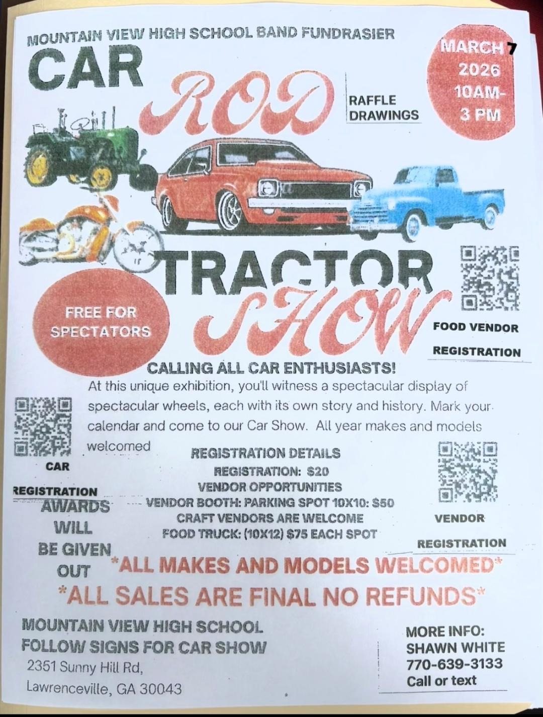 ๐ Mountain View High Band Programโs 1st Annual Car & Vendor Show