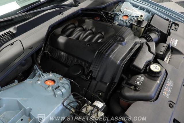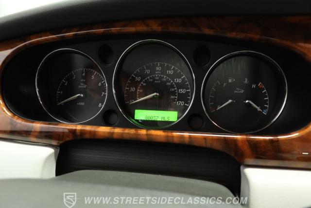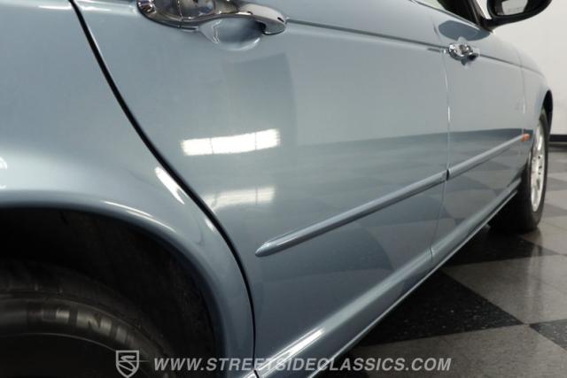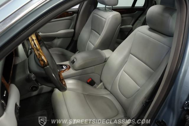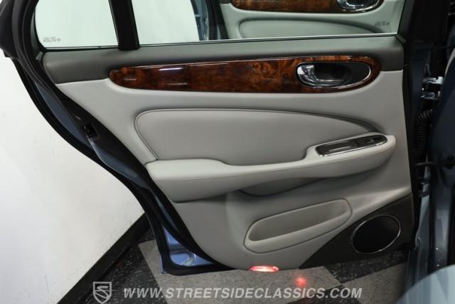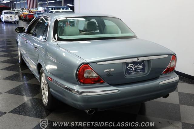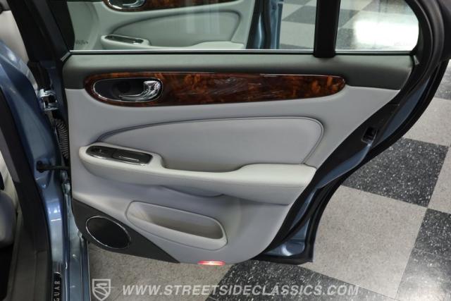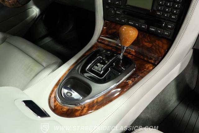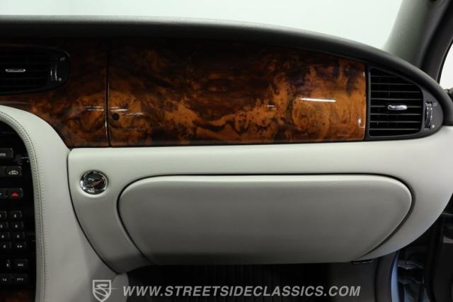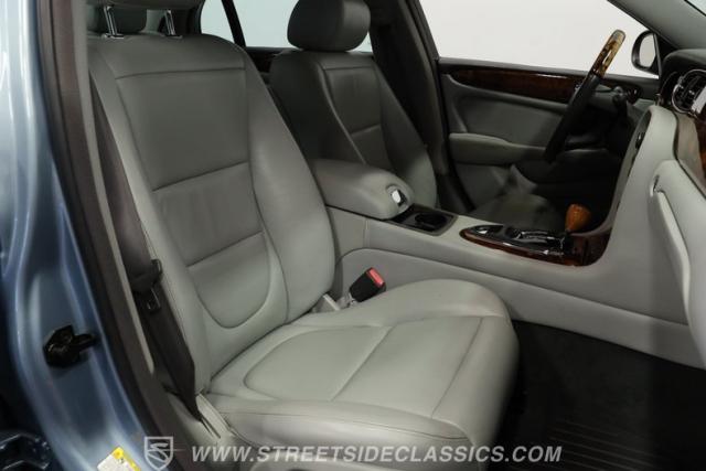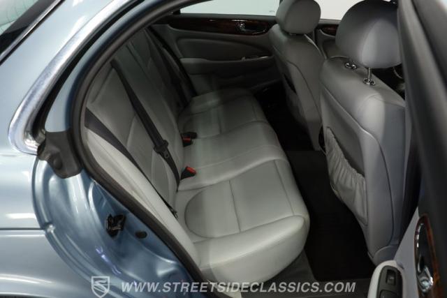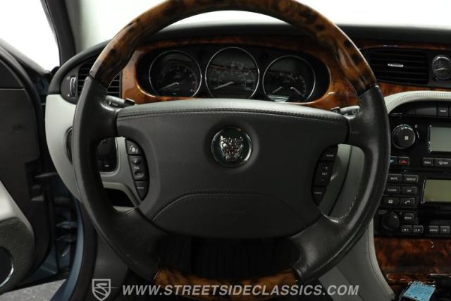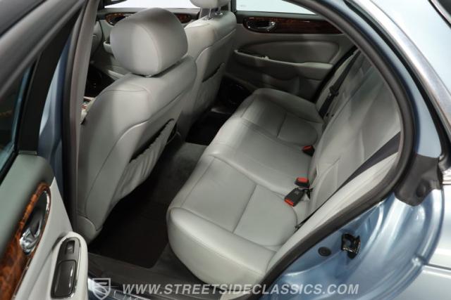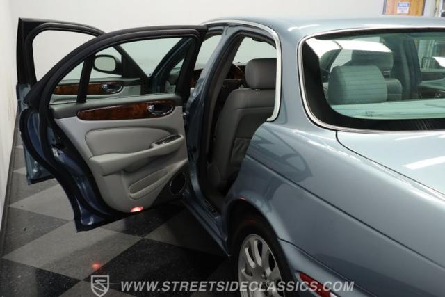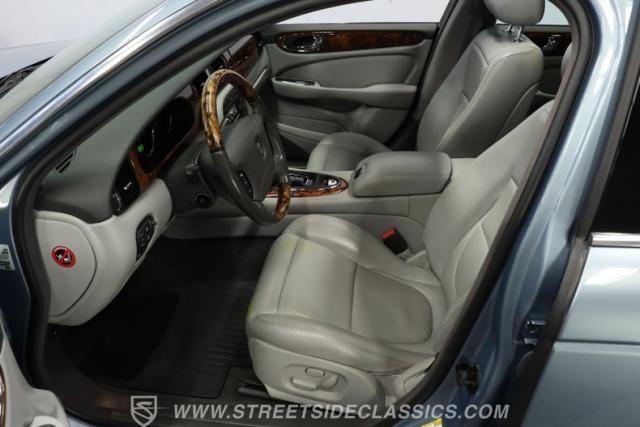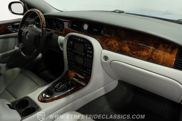 Under the hood, the engine bay is clean and appears largely untouched outside of routine maintenance. Power comes from a fuel-injected 4.2-liter V8 paired with a 6-speed automatic transmission that sends power to the stock rear axle. An adaptive suspension system with upgraded conventional springs helps maintain a smooth and confident ride. Supporting the suspension is a set of Jaguar 17-inch wheels wrapped in 235/55R17 tires. Power anti-lock disc brakes at all four corners provide confident stopping power, while the factory dual exhaust maintains the quiet, smoothed-out sound expected from a Jaguar luxury sedan.