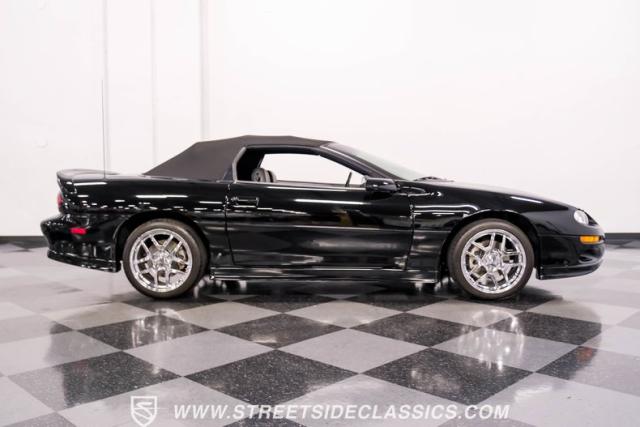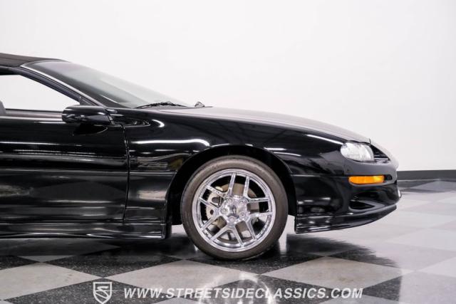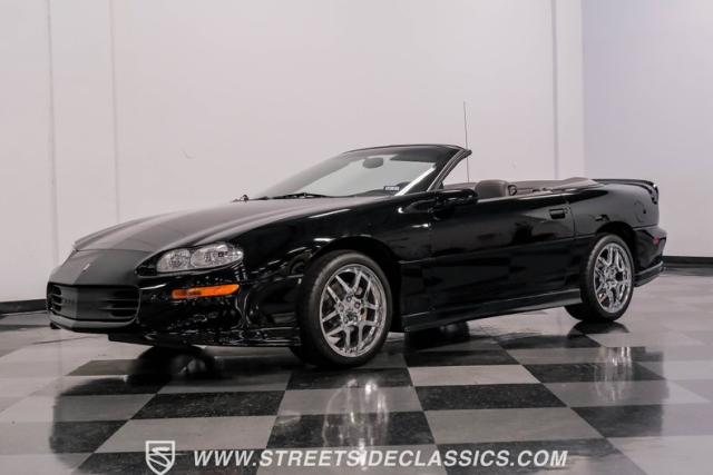 This 2002 Chevrolet Camaro Z/28 Convertible is a time capsule of early 2000s performance. With its powerful V8, sleek black-on-black color scheme, and remarkably low mileage, it offers a rare opportunity to own a piece of Camaro\'s final fourth-generation year. Call today!
