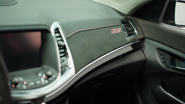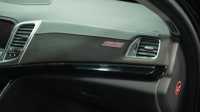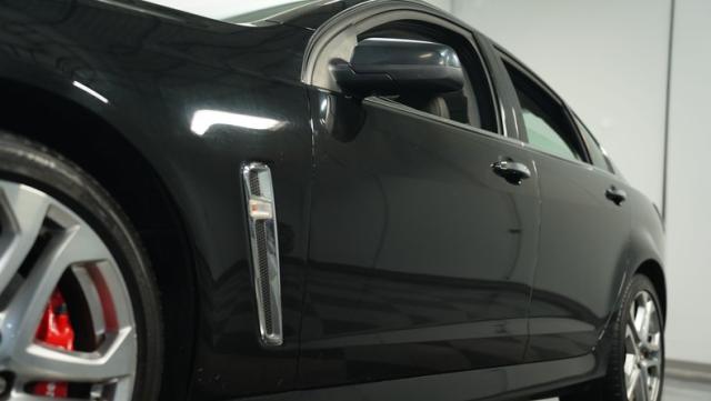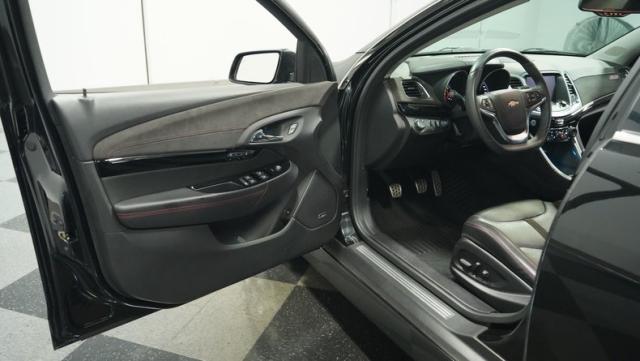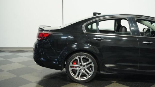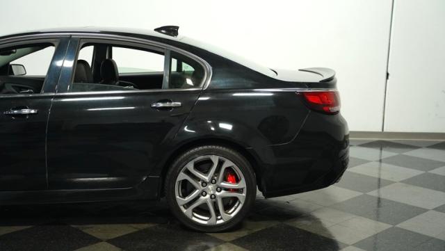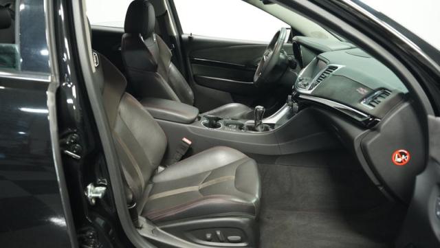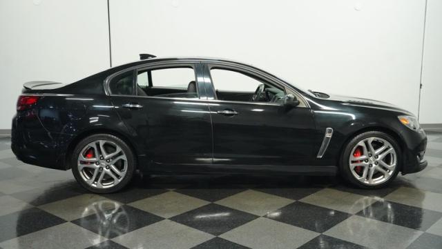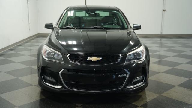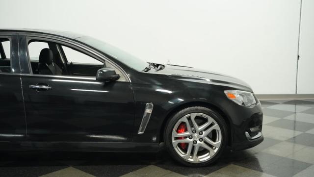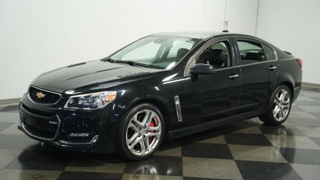 This 2016 Chevrolet SS is a rare breed, one of only 735 black manual transmission models ever produced. Cloaked in Phantom Black, this four-door muscle car flexes its American muscle with an aggressive front fascia and a subtle rear spoiler. The SS rides on 19-inch forged aluminum wheels, wrapped in sticky 245/40R19 front and 275/35R19 rear Bridgestone Potenza tires. This combination provides the perfect stance and grip for spirited driving. Dual exhaust tips peek out from the rear valance, signaling the V8 power within. LED daytime running lights and HID headlights illuminate the road ahead, while the sleek profile cuts through the air with purpose.