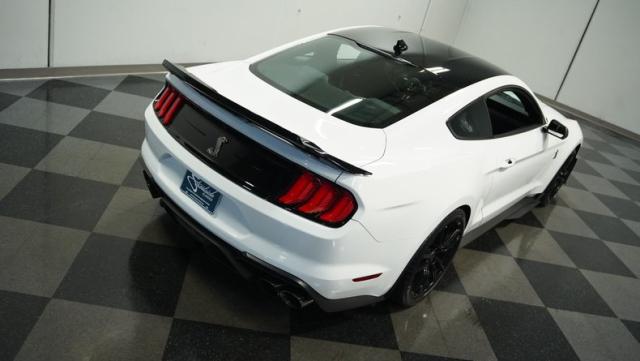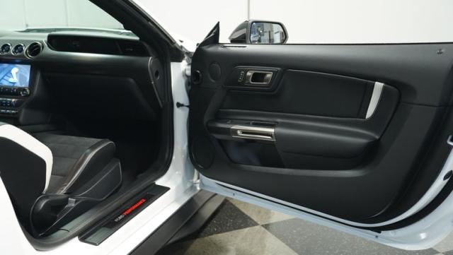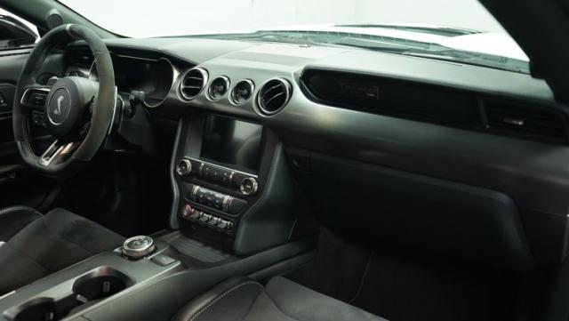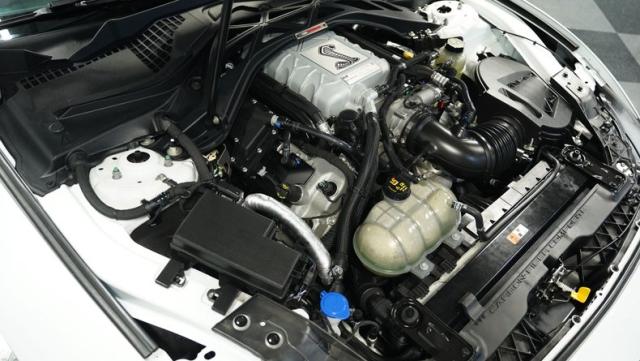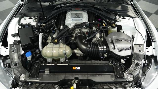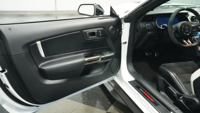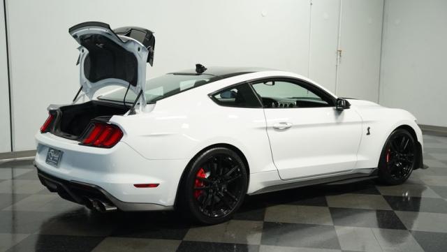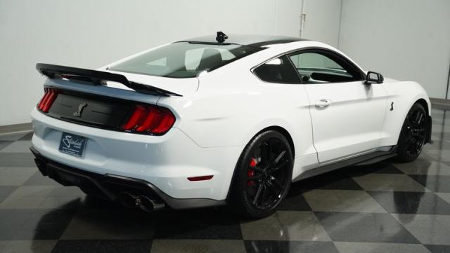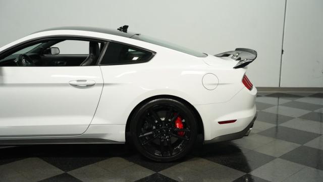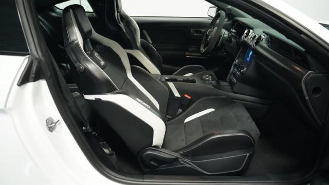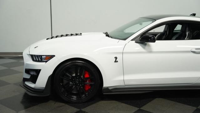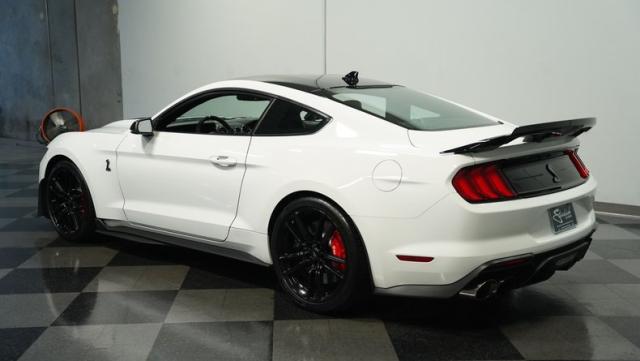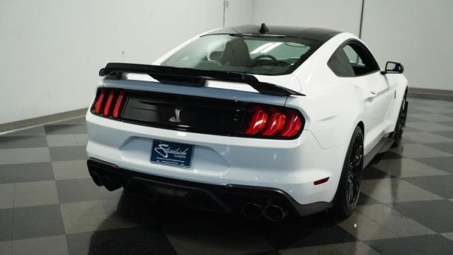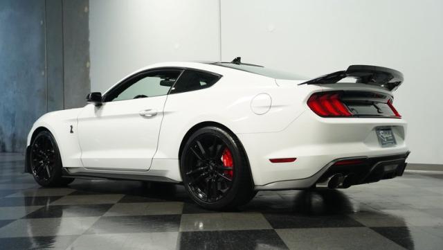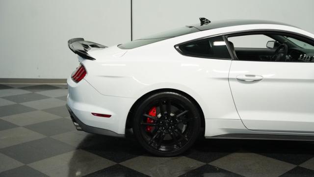 Ford\'s most powerful production car ever, this 2020 Mustang GT500 in Oxford White example showcases raw muscle with refined aerodynamics. The aggressive front fascia, vented hood, and sleek profile speak volumes about its performance potential. Rolling on 20-inch wheels wrapped in 305/30ZR20 front and 315/30ZR20 rear tires, it\'s clear this Mustang means business. The painted black roof adds a striking contrast, while the quad-tip exhaust hints at the beast within.