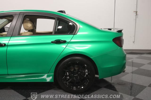 This sedan is quite modern, but you just know the best BMWs will also become valued classics that many of the others out there. So it\'s best to start with a young one that has been treated correctly. We love the look of the neon-like green on this one, and it\'s actually a wrap protecting the black paint underneath (so it likely retains its piano-like luster within.) In fact, you know it\'s a black car because areas like the roof and door handles were not included. These unwrapped portions were thoughtfully done so that they would go with the rear spoiler, deeply tinted windows, window trim, tinted tail lights, side mirrors, and grille for an aggressive-style two-tone. And of course, the upgrade to a set of 18-inch Petrol wheels adds to this dark and sporty appeal. The result is a sedan that has plenty of extra attitude today without altering that will keep it valuable in the future.