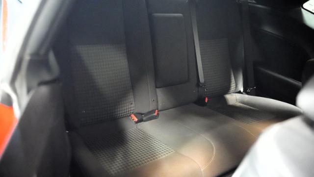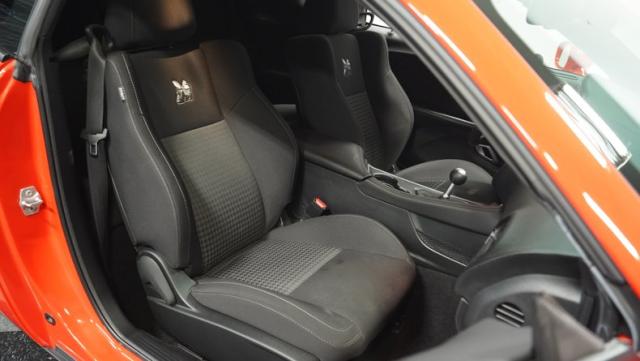 Inside, black cloth bucket seats anchor a purpose-built cockpit. The console-mounted shifter for the 6-speed manual transmission sits ready for action. Power amenities and air conditioning maintain comfort during spirited drives. The factory entertainment system provides the soundtrack while the black interior trim complements the exterior\'s athletic theme.
