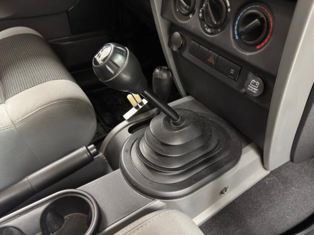 Body colored steel frames gray plastic inserts in the door where you\'ll find the door pull, door opener, and some storage in steel plate stamped plastic. Once inside, gray and charcoal bucket seats await, tall backed and topped with headrests, vinyl surrounds washable cloth inserts. There are no rear seats and the cargo area is finely lined with cloth covered panels and a rubber floor mat and it\'s here where the integrated roll cage is clearly seen. The meaty 4 spoke steering wheel leads to an instrument cluster housed in a textured plastic dash, four simple gauges and some digital readouts, nothing overwrought to distract you from the boulder field ahead. The center stack is uniformly black with an AM/FM/CD radio, circular vents, and a basic A/C dial panel, and the materials seamlessly become the center console where we find the shifter and range selector, and requisite cupholders and armrest. Black carpet is protected by hardy weather mats at our feet and the light colored plastic ceiling is uncovered while an overhead console bridges the middle and contains vents, a dome light, and speakers.