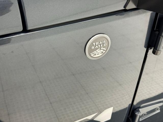 Our first walk around of the vehicles results in some satisfying sighs as the exterior is in fantastic condition, here in a great color which Jeep calls Steel Blue Metallic which has enough gray in it to blend wonderfully with the charcoal plastic components that include the roof, bumper cover, and wheel flares. Within those wheel openings, we find 17-inch cast aluminum wheels are wearing 255/75R17 tires and in stock configuration, they fit inside the wheel wells. Up front, a bull bar frames fog lights over the integrated lights in the bumper which also houses tow hooks. Wide side mirrors cling to the cowl and a covered spare tire is perched on the back. As mentioned, we could not find any exterior flaws on this 4x4.