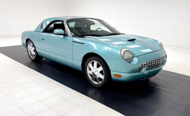 For consignment, a 2002 Ford Thunderbird convertible with a title verified 34,215 actual miles, and this one checks all the boxes with first year exclusive color, a matching accessory hardtop, chrome wheels, and the interior color package. Ford had plans to limit production to 25,000 the first year, but excitement exceeded their expectations and 31,368 were produced in 2002.