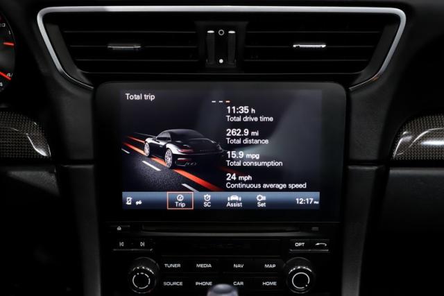 INTERIOR: I\'m very impressed by this interior! It is very refined, focused on comfort, packed with technology while keeping a sports car vibe. In addition to the long list of factory features it also has optional Carbon Fiber interior package, heated and ventilated sport seats with 18 way power adjustments, crests on the headrests and the Light Design Package. Check out that steering wheel, it\'s covered in glove soft leather, full of satisfying controls including paddle shifters! It is mint inside this car.