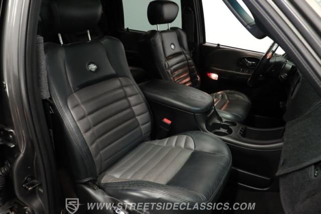 Step inside and you\'ll immediately appreciate the attention to detail that defines the Harley Davidson edition. This truck features factory Harley Davidson leather seats that provide both comfort and unmistakable style. The power driver\'s seat, original radio and CD player, and power sunroof create a luxurious atmosphere, while power locks, power windows, and tilt steering column add daily convenience. The dash remains in excellent condition, protected by a cover, and the interior has been well-preserved, offering an inviting space for driver and passengers alike.