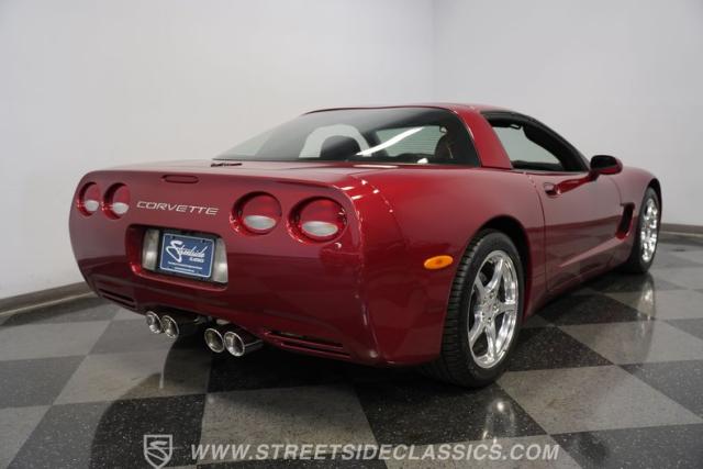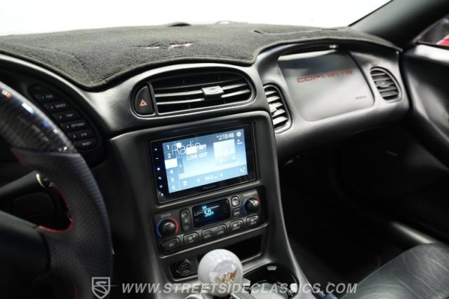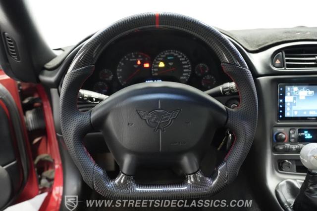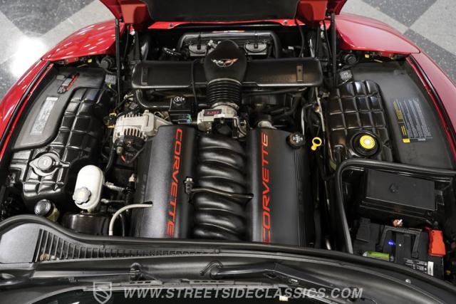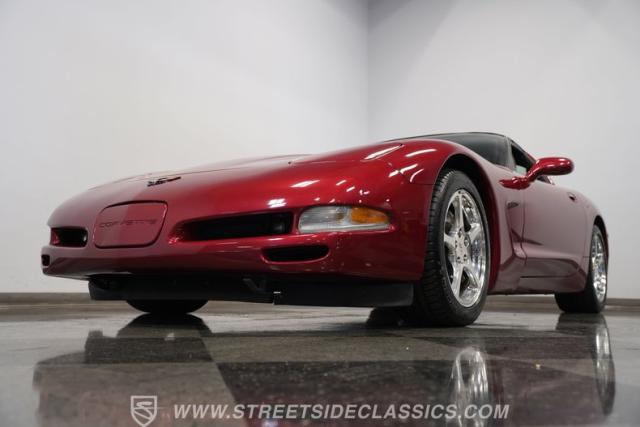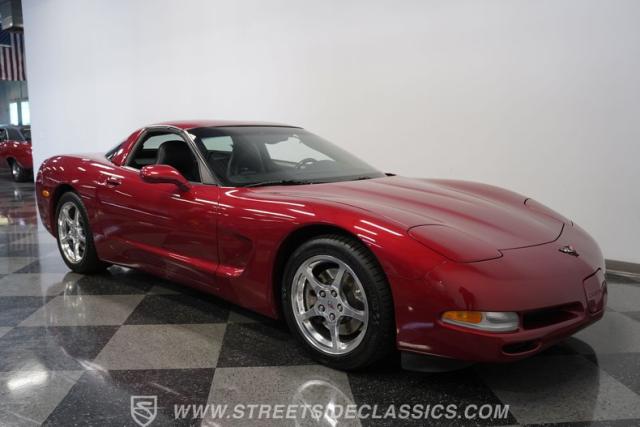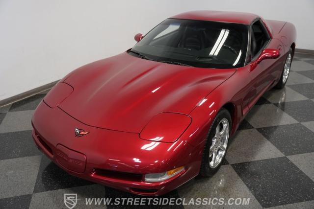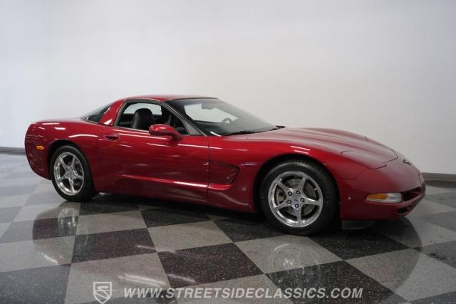 This 2004 Chevrolet Corvette Z51 in Magnetic Red Metallic is the perfect blend of style and performance. With a well-preserved ebony leather interior, it\'s clear that thoughtful care has gone into every detail of this sleek machine. Sitting confidently on factory optional 17-inch front and 18-inch rear chrome Corvette wheels, wrapped in performance-focused 245/45ZR17 front and 275/40ZR18 rear tires, this Corvette is ready to impress whether you\'re cruising through town or tackling twisty roads. This car was optioned from the factory with rare both painted and transparent removable targa roof panels. Documentation includes the window sticker as well as build sheet. Inside is a driver\'s delight, featuring comfortable leather bucket seats that show very well. The interior features power windows, power locks, ice-cold air conditioning, and an upgraded Pioneer AM/FM/AUX/Bluetooth touchscreen stereo. The center console shifter puts control at your fingertips, while the heads-up display keeps vital information in your line of sight. Dual airbags provide added peace of mind as you enjoy the open-air targa roof excitement this offers. Additionally, this Corvette has been upgraded with a flat-bottom steering wheel with fiber-style accents and Corvette branded shift knob.
